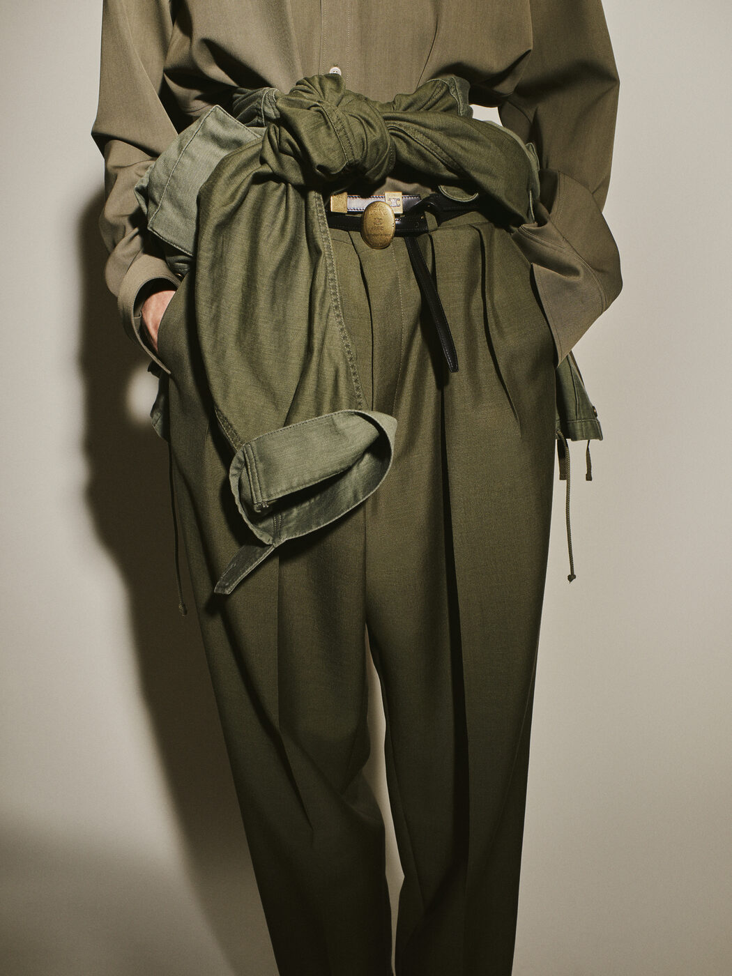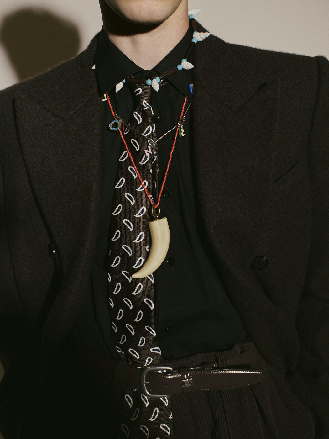 셀린느의 2026 가을 겨울 남성 컬렉션은 ‘당신의 옷장에 대한 이야기’로부터 시작한다. 트렌치 코트와 싱글 재킷, 찢어진 데님과 울 수트 팬츠, 크루넥 니트와 블루 셔츠 같은 기본 아이템을 어떻게 입을 것인가에 대한 부드러운 권유. 같은 옷이어도 작은 액세서리로 어떤 변주를 줄 수 있는지에 대한 스마트한 해석이기도 하다. 스카프, 참 액세서리, 로고 벨트처럼 남성복에서는 그다지 주인공이 아니었던 액세서리의 은근한 곁들임도 눈여겨볼 만하다. 첫 컬렉션의 결을 유지하되 더 분방하고 세련된 마이클 라이더식 남자옷을 만난다. 결국 이 컬렉션은 발견이라는 명제를 얻게 된다. 내 오래된 코트에 보풀이 일어도, 낡은 진이 더 바래도, 여전히 고운 색 니트가 해어졌어도 새 것이 아닌 것을 옷장에서 발견하는 새로움에 대한 발견. 셀린느의 백합처럼 곱고 유연한 말투로 이야기한다.