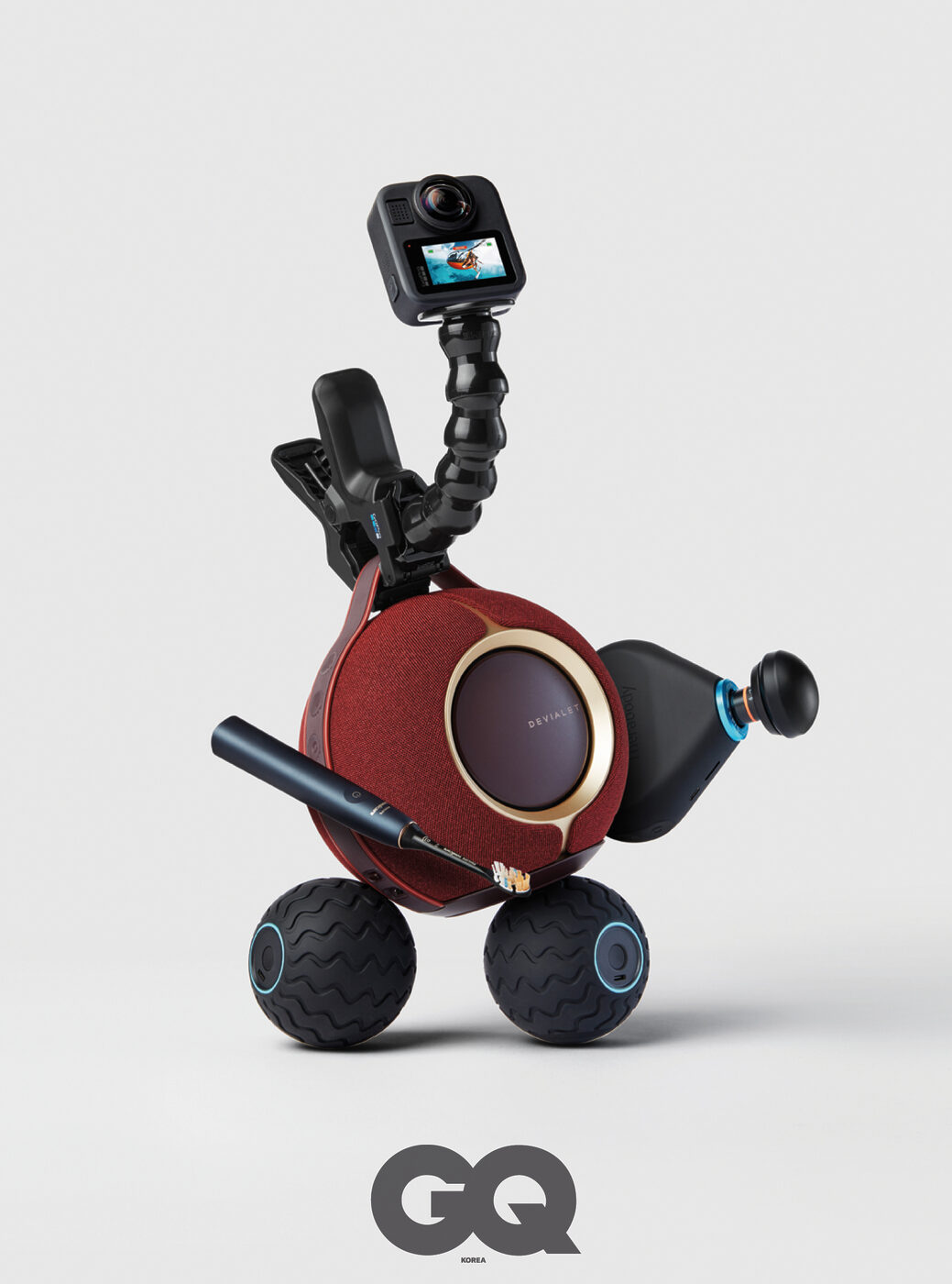 위부터ㅣ① GOPRO MAX 2 무려 8K 화질을 360도 동영상으로 촬영할 수 있는 액션 카메라, 맥스2. 촬영 환경에 따라 렌즈도 교체할 수 있고, 수심 5미터까지 방수도 지원된다. 74만8천원, 고프로. ② GOPRO GOOSENECK 다양한 각도와 앵글로 카메라를 고정하는 마운트, 구스넥. 3만원, 고프로. ③ DEVIALET MANIA OPERA ROUGE AI가 공간을 인식해 소리를 360도로 확장하는 하이파이 포터블 스마트 스피커, 마니아 오페라 루주 에디션. 4개의 풀레인지 드라이버와 2개의 우퍼를 24K 골드링 안에 담았다. 국내 60대 한정 모델. 1백79만원, 드비알레. ④ PHILIPS 9900 PRESTIGE AI가 양치 과정을 초당 1백 회 감지해 강도를 자동으로 조절, 치아 마모와 잇몸 손상을 방지해주는 음파전동칫솔, 9900 프레스티지. 50만원, 필립스. ⑤ THERABODY THERAGUN MINI PLUS 초당 40회, 최대 16밀리미터까지 진동하는 마사지 건, 테라건 미니 플러스. ‘플러스 팁’으로 불리는 마사진 건 헤드를 교체하면 온열과 냉찜질 등 더욱 효과적인 관리도 가능하다. 34만9천원, 테라바디. ⑥ THERABODY WAVE SOLO 무게 3백 그램, 지름 8.6센티미터의 작고 가벼운 마사지 볼, 웨이브 솔로. 마사지 강도는 3단계로 구분되며, 어플로도 이를 조절할 수 있다. 배터리는 최대 1백20분 동안 작동된다. 10만9천원, 테라바디.