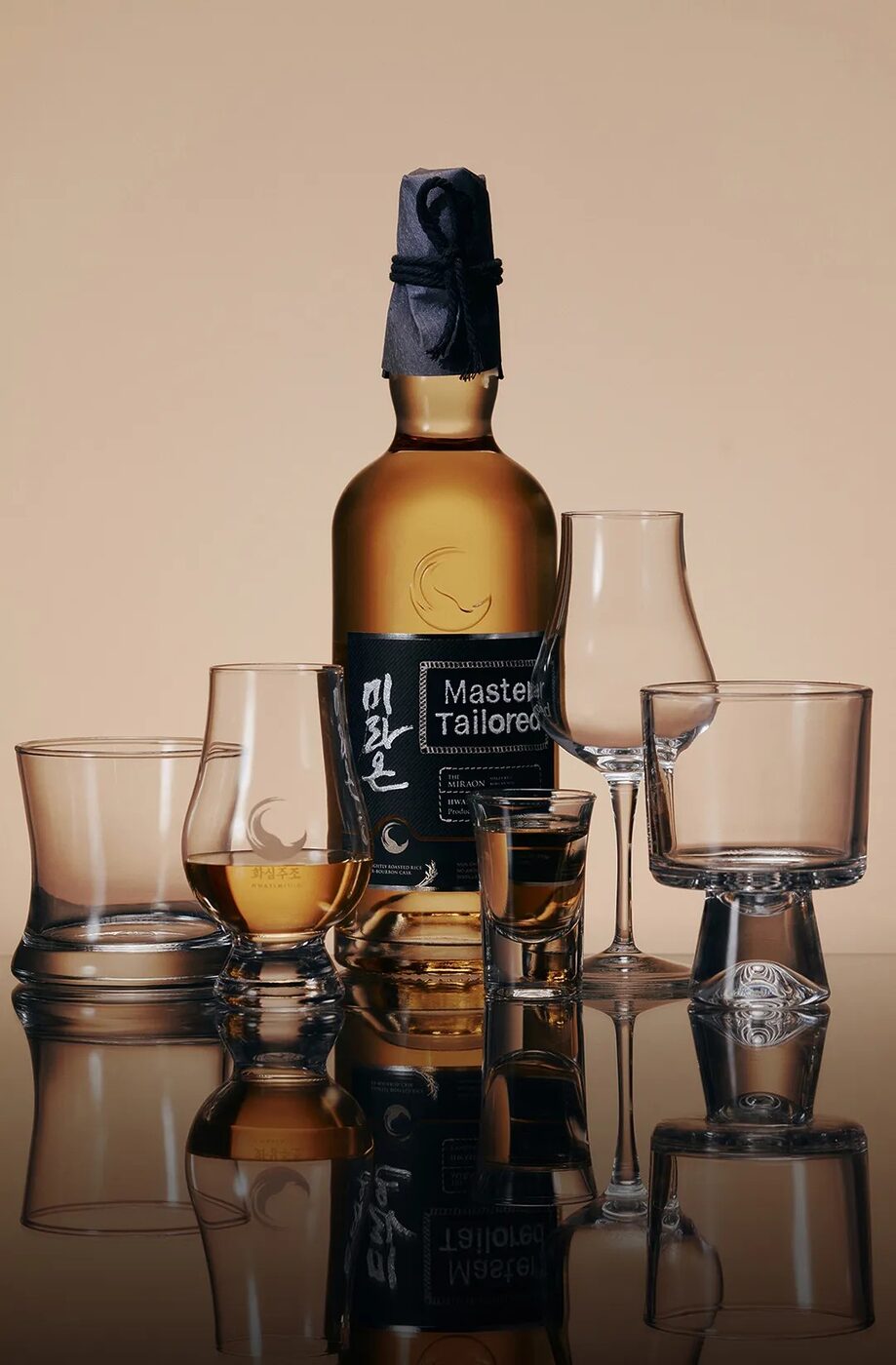 경기도 구리에서 쌀과 고구마로 브라운 스피릿을 빚는 화심주조에서 무신사와 협업해 ‘미라온 마스터 테일러드’라는 이름의 증류식 소주를 내놓았다. 지금까지의 주된 주조 방식과 다르게 도리어 쌀을 가볍게 살짝 볶아낸 공법에서 쌀이 품은 고유의 향이 피어오른다. 소주에 입힌 말쑥한 새 옷.