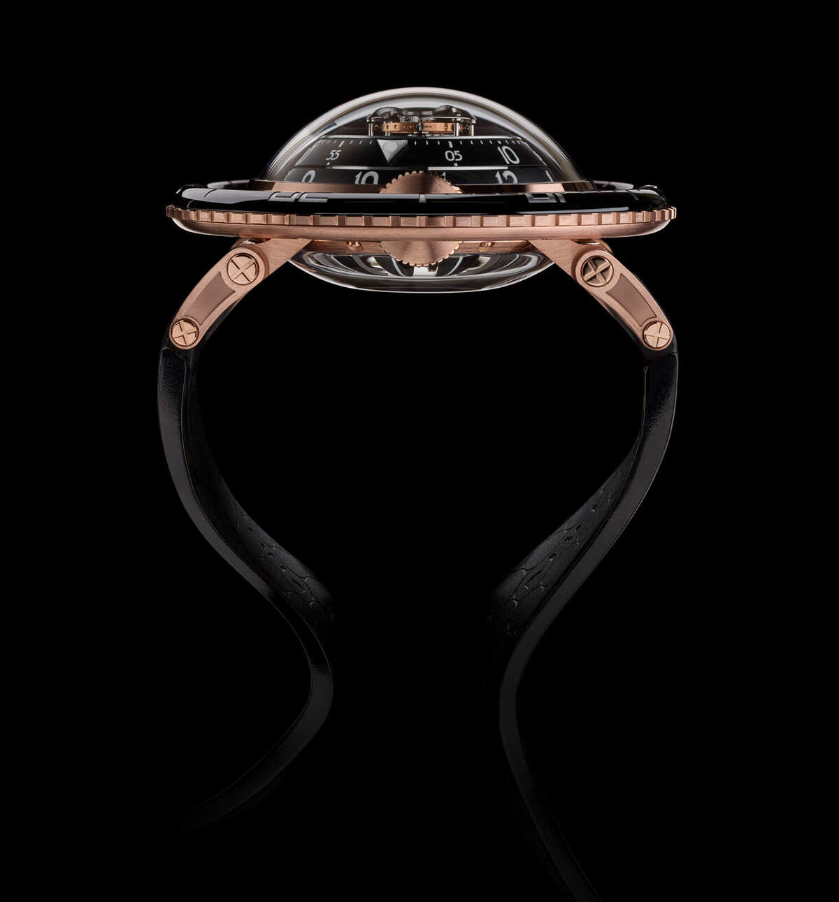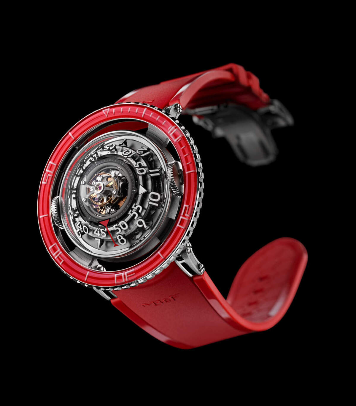 MB&F 창립자 막시밀리안 뷔서가 휴가지에서 본 해파리를 모티브로 한 이 시계의 내부는, 매우 기계적인 시계학에 입각해 균형을 이룬다. 해파리의 머리 부분을 연상케 하는 반구 형태의 다이얼이 입체감을 형성하고, 하단의 와인딩 로터부터 상단의 투르비용에 이르기까지 모든 메커니즘이 중앙을 기준으로 동심원 회전한다. 많은 해파리와 마찬가지로, 어두운 곳에서는 발광한다. 시·분 숫자에서, 그리고 무브먼트 내부 주변 및 와인딩 로터를 따라 빛이 난다.