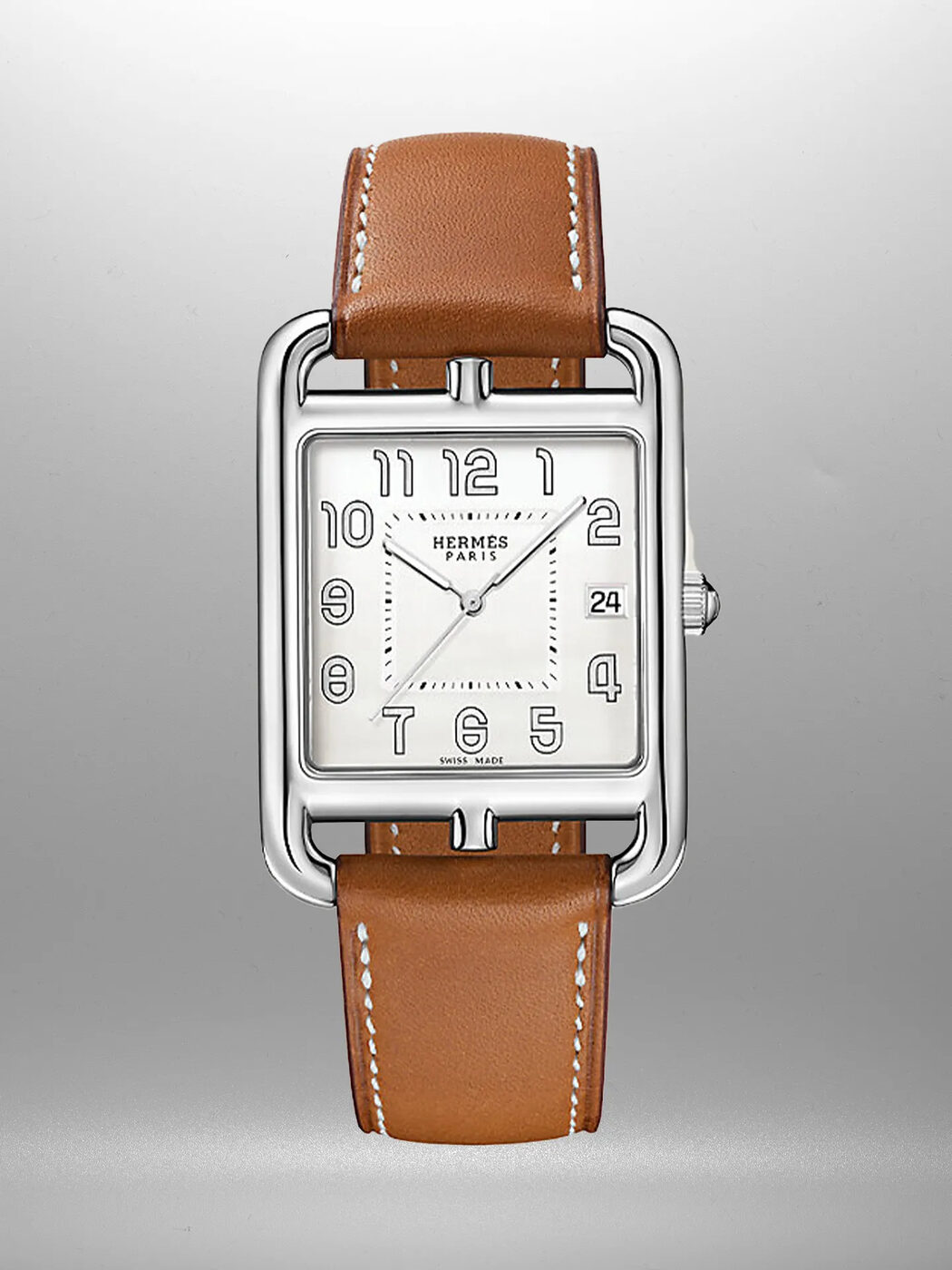 파리지앵 감성과 개성있는 그래픽, 그리고 조용한 엇박자. 에르메스의 케이프 코드는 시계를 지위의 상징이 아니라 디자인 오브제로 만든다. 직사각형 케이스와 시그니처 더블 투어 스트랩은 시계와 주얼리의 경계를 자연스럽게 흐린다. 패션 하우스의 감각이 스위스 메커니즘에 더해져, 세련되면서도 약간 반항적인 느낌을 준다. hermes.com