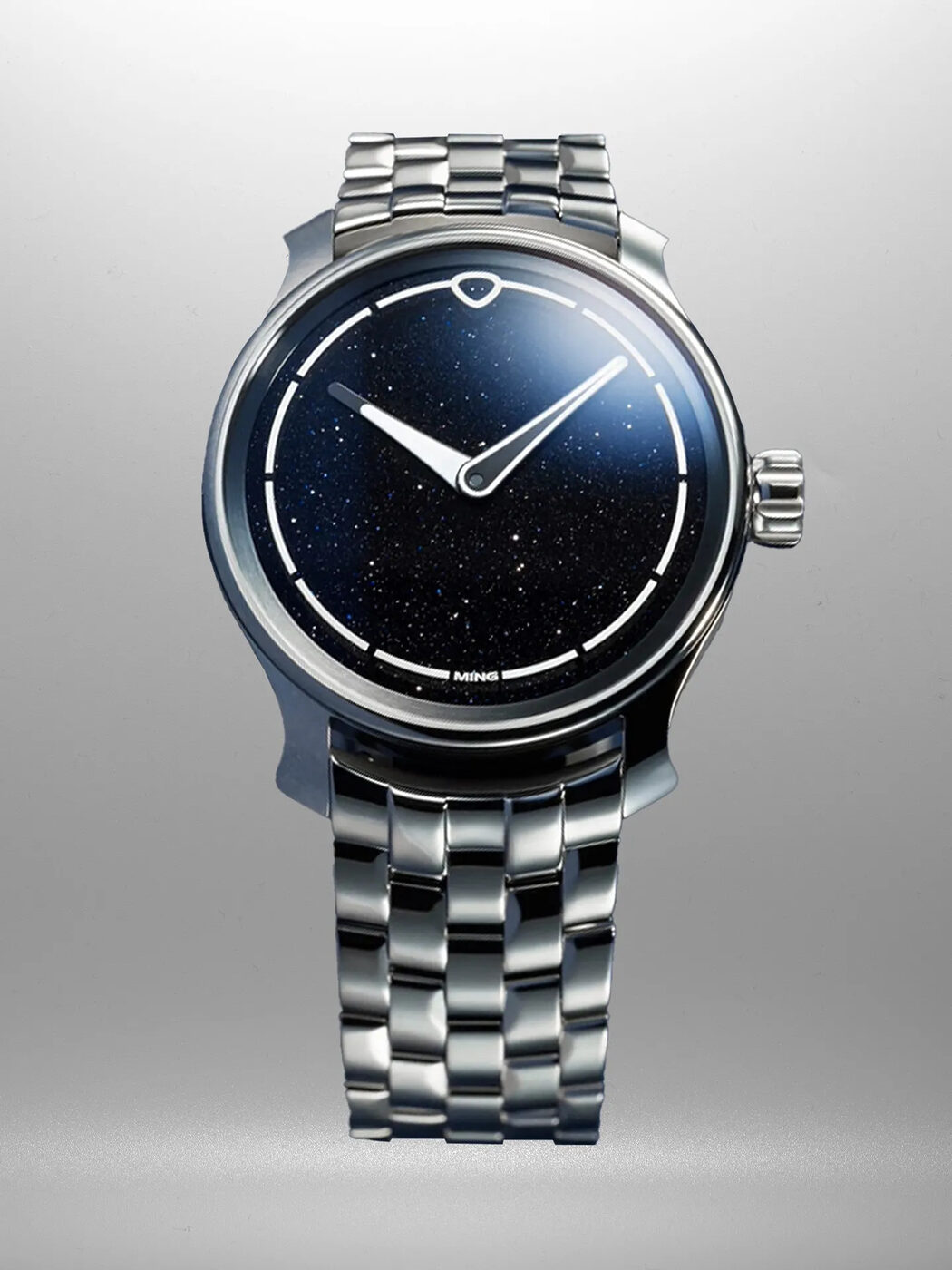 인디 브랜드 밍은 이미 컬트적인 팬층을 구축했고, 37.08 스타라이트는 그 이유를 잘 보여준다. 어벤추린 다이얼은 깊은 블루 블랙 바탕 위에 별이 흩뿌려진 밤하늘을 연상시킨다. 우아함에 실험적인 엣지를 더한 느낌이다. 지루하고 뻔한 시계에 질렸다면, 이건 개성을 드러내는 날카롭고도 착용 가능한 선택이다. ming.watch