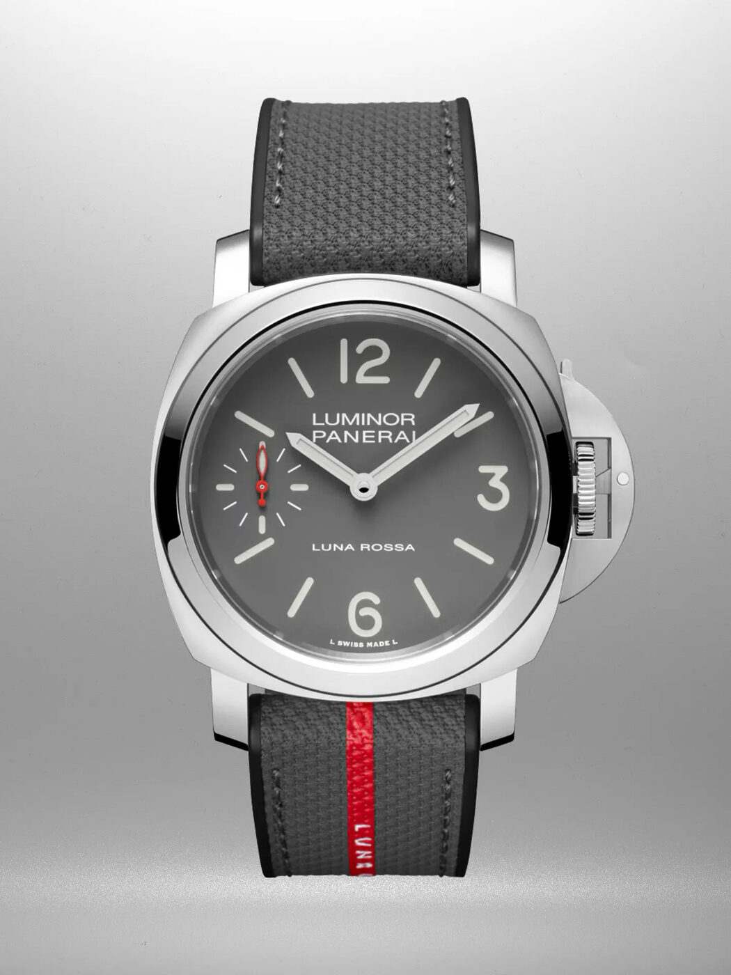 파네라이 특유의 실루엣에 스포티한 리믹스를 더했다. 쿠션 케이스와 큼직한 숫자는 전형적인 파네라이지만, 분위기는 남성미 과잉보다는 디자인 오브제에 가깝다. 3일 파워리저브 무브먼트로 기술적인 완성도도 높고, 절제된 컬러 팔레트 덕분에 전체 인상은 정제돼 있다. 44mm로 존재감은 확실하지만, 스타일을 해치지 않을 정도의 자제력이다. panerai.com