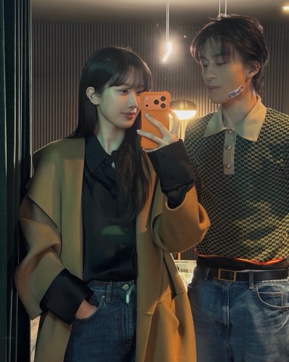 아이템이 달라도 컬러 하나만 겹치면 이미 시밀러룩은 완성이다. 문가영과 구교환처럼 가장 쉬운 방법은 청바지, 셔츠, 벨트 같은 기본 아이템을 활용하는 것. 둘 다 데님 팬츠를 선택하거나, 상의 컬러를 블랙 계열로 맞추는 식이다. 중요한 건 똑같이가 아니라 연결감. 하나의 컬러가 두 사람을 자연스럽게 이어주면, 나머지는 각자 취향대로 입어도 충분히 커플 분위기가 살아난다. 시밀러룩이 처음이라면, 복잡한 아이템보다 컬러 매칭부터 시작해보자.
