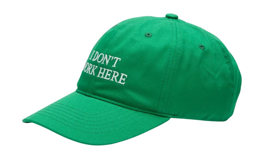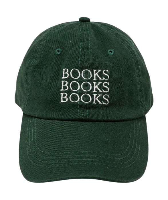 그냥 모자는 아니다. 짙은 포레스트 그린 컬러의 베이스볼 캡이다. 클래식한 파이브 패널 디자인에, 앞면에는 깔끔한 세리프 서체로 “BOOKS BOOKS BOOKS”라는 문구가 자수로 새겨져 있다. 뒤쪽 스트랩은 묵직한 브라스 버클로 고정돼 있었는데, 그 작은 디테일에서 남성복을 좋아하는 사람들이 괜히 설레는 단단함이 느껴졌다. 요란하지도, 아이러니를 노리지도 않았다. 하고 싶은 말만 정확히 하고는 쿨하게 지나가는 느낌이었다.