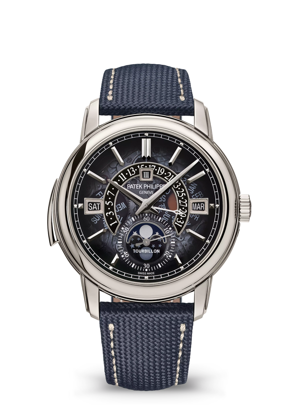 플래티넘 케이스에 딥 블루 그러데이션 사파이어 크리스털 다이얼을 적용한 현대적인 디자인의 모델. 케이스 왼쪽에 있는 슬라이더로 미닛 리피터를 작동하며, 시·쿼터·분을 소리로 알려준다. 그 밖에도 투르비옹, 퍼페추얼 캘린더, 레트로그레이드 날짜 표시 등 하이 컴플리케이션 기술이 집약된 걸작이다. 20억 5,530만 원.