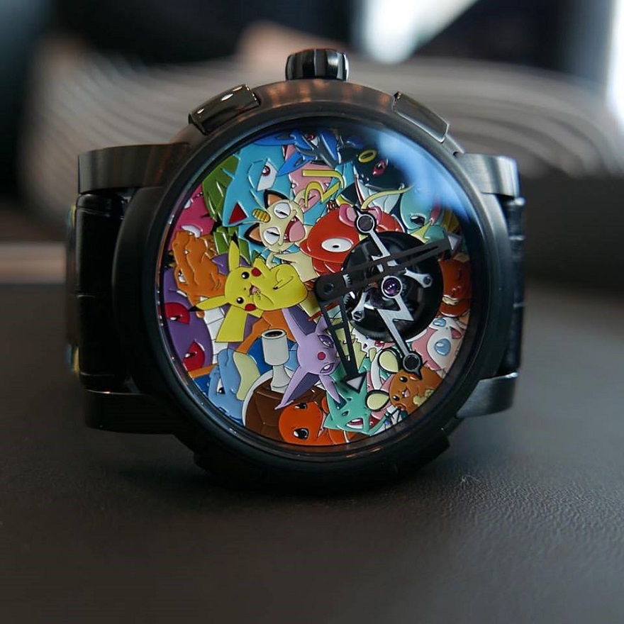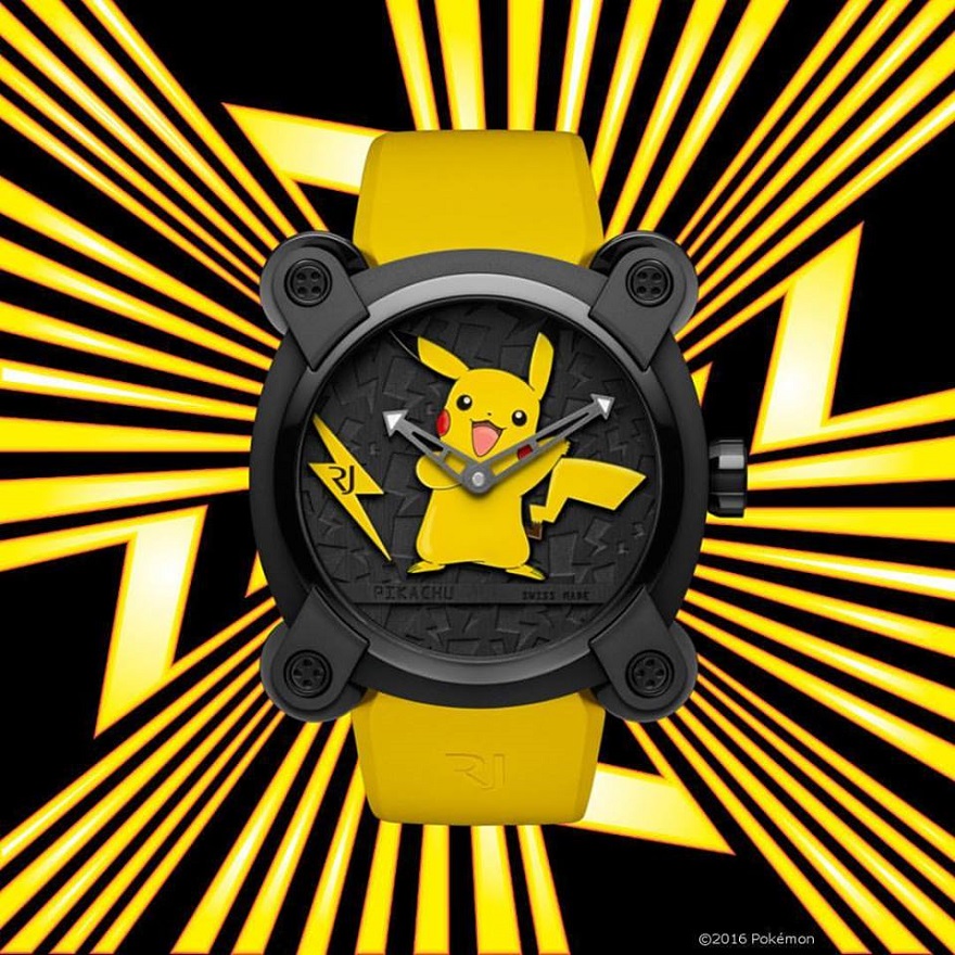 아폴로 11호의 잔해로 만든 시계, 시간을 알 수 없는 시계 등 독특한 에디션을 선보이기로 유명한 스위스의 시계 회사 로맹 제롬. 이들은 포켓몬스터를 테마로 하는 한정판 시계를 내놓은 적 있다. “밀레니얼 세대의 엠블럼”이라고 소개된 이 시계의 특징은 피카츄의 번개 모양을 모델로 한 투르비용 브리지다. 다이얼에는 초창기 포켓몬들이 빼곡히 새겨져 있다. 약 3억 6천만 원이라는 높은 출시가로 화제가 됐다.