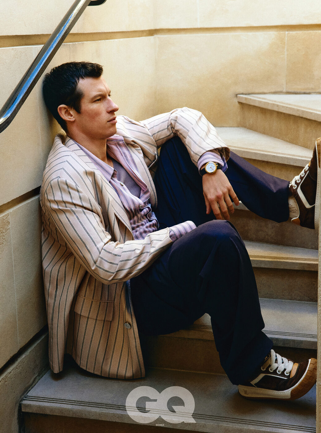 터너의 최근 작품은 영화 <영원 Eternity>(2026)이다. 클래식한 시대 의상을 벗은 터너는 말끔하고, 위트 있으며, 다정하고, 사랑스럽다. 그가 연기한 루크 Luke는 사후 세계에서 사랑을 기다리는 순종적인 인물이다. “이 작품은 단순한 로맨틱 코미디가 아니에요. ‘시간’과 ‘기억’이라는 무거운 소재를 유머리스하면서도 진중하게 다루죠. 마치 연극과 같은 리듬이 있어요.” <더 플래이리스트> 와의 인터뷰 내용 중