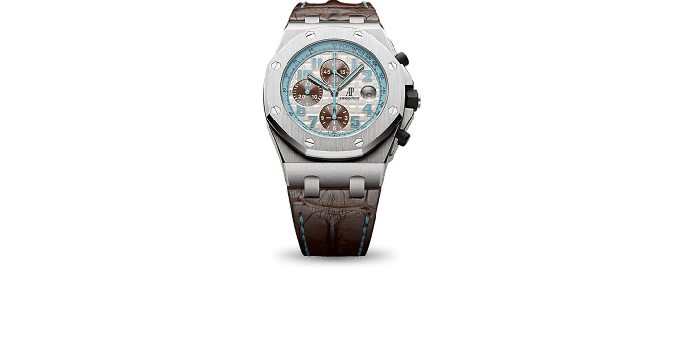 42mm 스틸 케이스, 러버로 코팅된 베젤과 푸시 버튼, ‘메가 태피스트리’ 다이얼이 특징인 하이엔드 럭셔리 스포츠 워치다. 강인한 티타늄/스틸 케이스 가공과 뛰어난 착용감, 100m 방수 성능을 갖춘 자동 크로노그래프 모델. 초기 오프쇼어 디자인의 전형을 보여주는 모델로, 지금은 생산하지 않는 러버-클래드 형태의 베젤이 핵심적인 빈티지 AP 매력 포인트다. 출시가 약 2천만 원대.