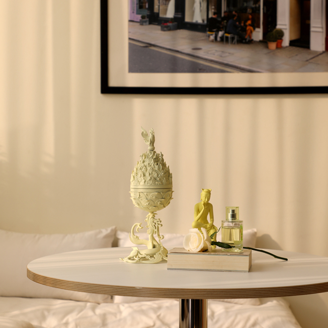 3D 프린팅으로 제작된 이 제품은 실제 유물의 산악형 뚜껑과 연꽃 모양 받침대 등 상징적인 조형 요소를 정교하게 축소해 구현한 것이 특징이다. 인센스 홀더로 사용할 수 있도록 내부 공간을 비워 두었고, 작은 물건을 담는 보관함으로도 활용 가능해 실용성과 장식성을 동시에 갖췄다. 전통 문화유산을 현대적인 생활 소품으로 재해석한 사례로, 책상 위나 거실 선반에 두면 공간의 분위기를 단번에 바꿔주는 오브제로 손색없다.