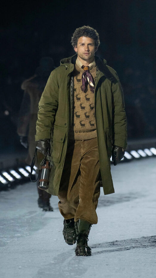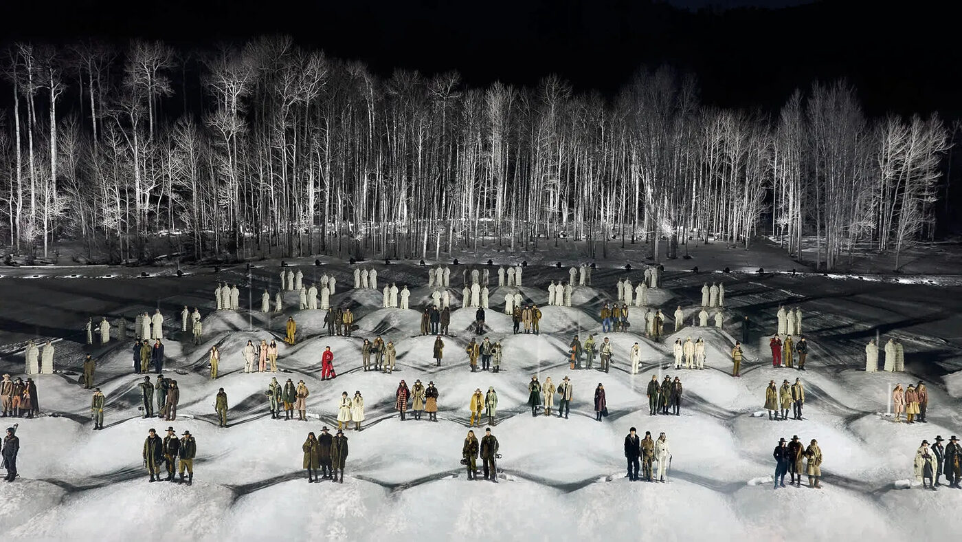 메인 이벤트인 2026년 가을 시즌 런웨이 쇼는 토요일 밤, 로키산맥 깊숙한 T-레이지-7 랜치의 계곡 야외에서 열렸다. 이번 쇼의 날씨 예보는 프랑스 알프스 스키 리조트에서 실제 눈보라 속에 진행됐던 이전 행사보다 훨씬 맑았다. 그에 앞서 2024년에는 스위스 생모리츠의 설원 숲에서 쇼를 개최한 바 있다. 런웨이로 향하는 눈길 포토월에서 셀러브리티와 주요 고객들은 사진 촬영을 진행했고, 케빈 코스트너, 애드리언 브로디, 블랙핑크 제니, 에밀리 라타이코프스키, 올랜도 블룸, 그리고 동계 올림픽의 단골 VIP 숀 화이트 등 브랜드의 대표 앰배서더가 등장할 때 플래시는 가장 밝게 터졌다.