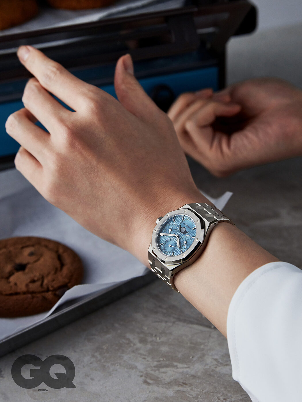 놀라운 기술력으로 스포츠 워치의 한계에 도전하는 시계다. 월과 윤년, 요일과 24시간 표시, 날짜 창과 문페이즈까지. 복잡한 컴플리케이션 기술력을 한곳에 모았다. 옥타곤 케이스와 8개의 스크루, 타피스리 패턴의 다이얼은 라이트 블루 컬러로 가꿔 스포츠 워치의 활달한 분위기도 엿보인다. 로열 오크 셀프 와인딩 퍼페추얼 캘린더 가격 미정, 오데마 피게.