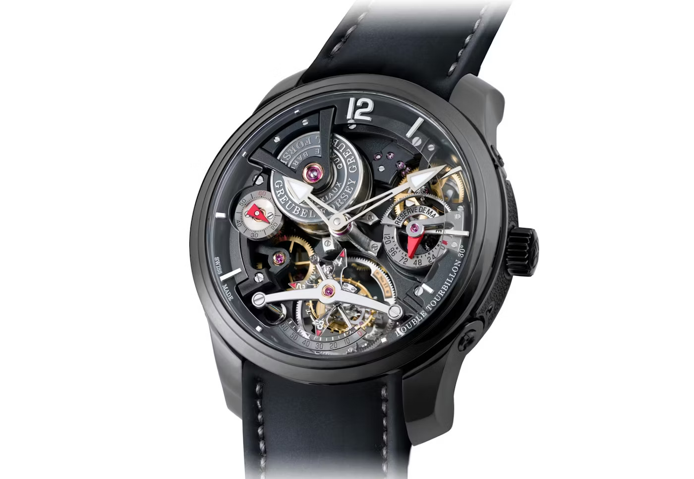 데이토나 인터내셔널 스피드웨이가 트랙 이름을 딴 롤렉스 데이토나와 밀접한 연관이 있음에도, 조던은 이날 또 다른, 훨씬 덜 알려졌지만 시계 애호가들 사이에서는 숭배에 가까운 스위스 브랜드를 선택했다. 그의 선택은 그뢰벨 포시의 더블 투르비용 30° 테크닉. 이 모델은 2004년 선보인 브랜드 최초의 시계 더블 투르비용 30° 콘템포랭 비전의 스켈레톤화된 후속작이라 할 수 있다. 오랜 그뢰벨 포시의 팬인 조던은 복잡한 타임피스를 알아보는 안목을 지녔다.