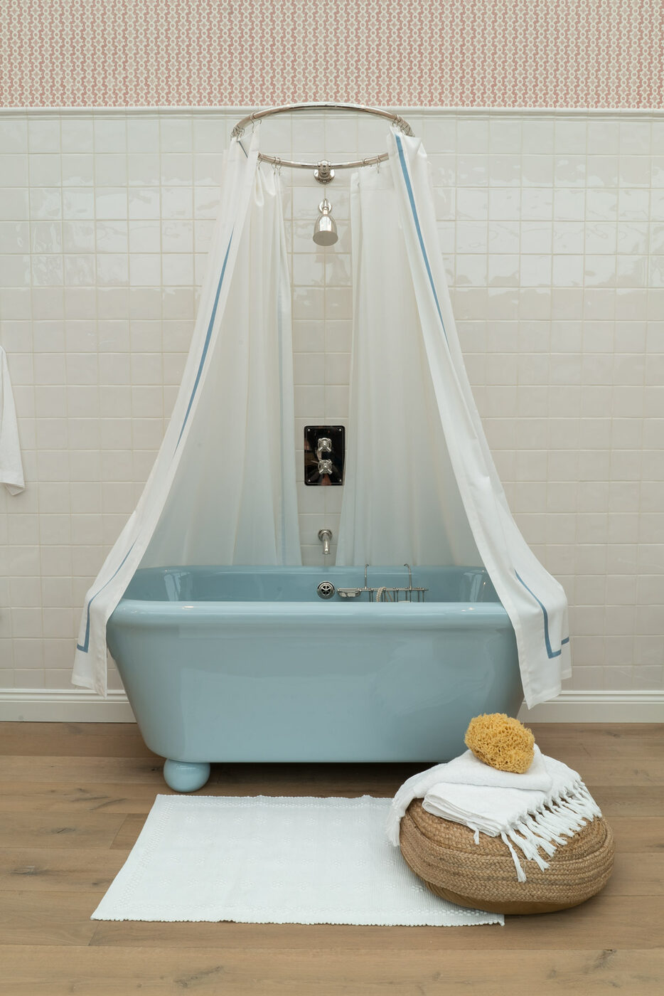 한편 더 워터모노폴리 The Water Monopoly는 1990년 영국에서 시작해 돌과 미네랄의 복합 재료인 비트라이트 Vitrite로 제작한 욕조와 클래식한 세면대를 다양한 범위의 색상으로 선보인다. 머스터드와 레몬 사이의 노랑, 오렌지와 딸기 사이의 주황, 푸른 물감에 바닐라 아이스크림을 한 스쿱 더한 것 같은 부드러운 하늘색 등을 입은 세면대나 수전은 지금 당장 웨스 앤더슨 감독 영화 현장에 갖다 두어도 어우러질 만큼 색온도가 선명하다.