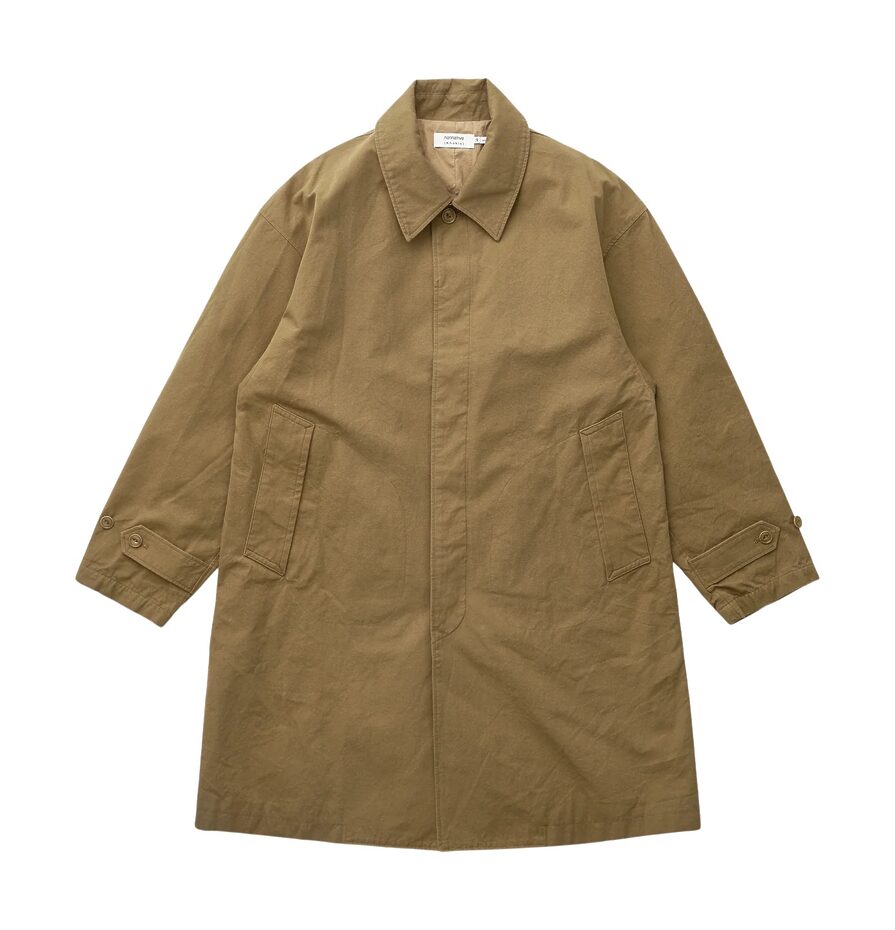 코튼 린넨 코트입니다. 클래식한 트렌치코트에 고어텍스 윈드스토퍼를 적용한 논네이티브의 아이디어와 카키스의 색감, 가공과 같은 빈티지한 무드가 함께 잘 어우러진 제품입니다. 윈드스타퍼 원단을 겉감과 안감 사이에 넣어서 제작했고요. 강한 워싱 과정을 거쳐 투습, 방풍의 기능성과 함께 빈티지한 터치감까지 갖췄습니다. 원단의 무게와 터치감, 2가지 컬러웨이, 오버사이즈지만 너무 길지 않고 적당한 기장감까지 모두 디테일한 논의를 통해 완성했습니다.