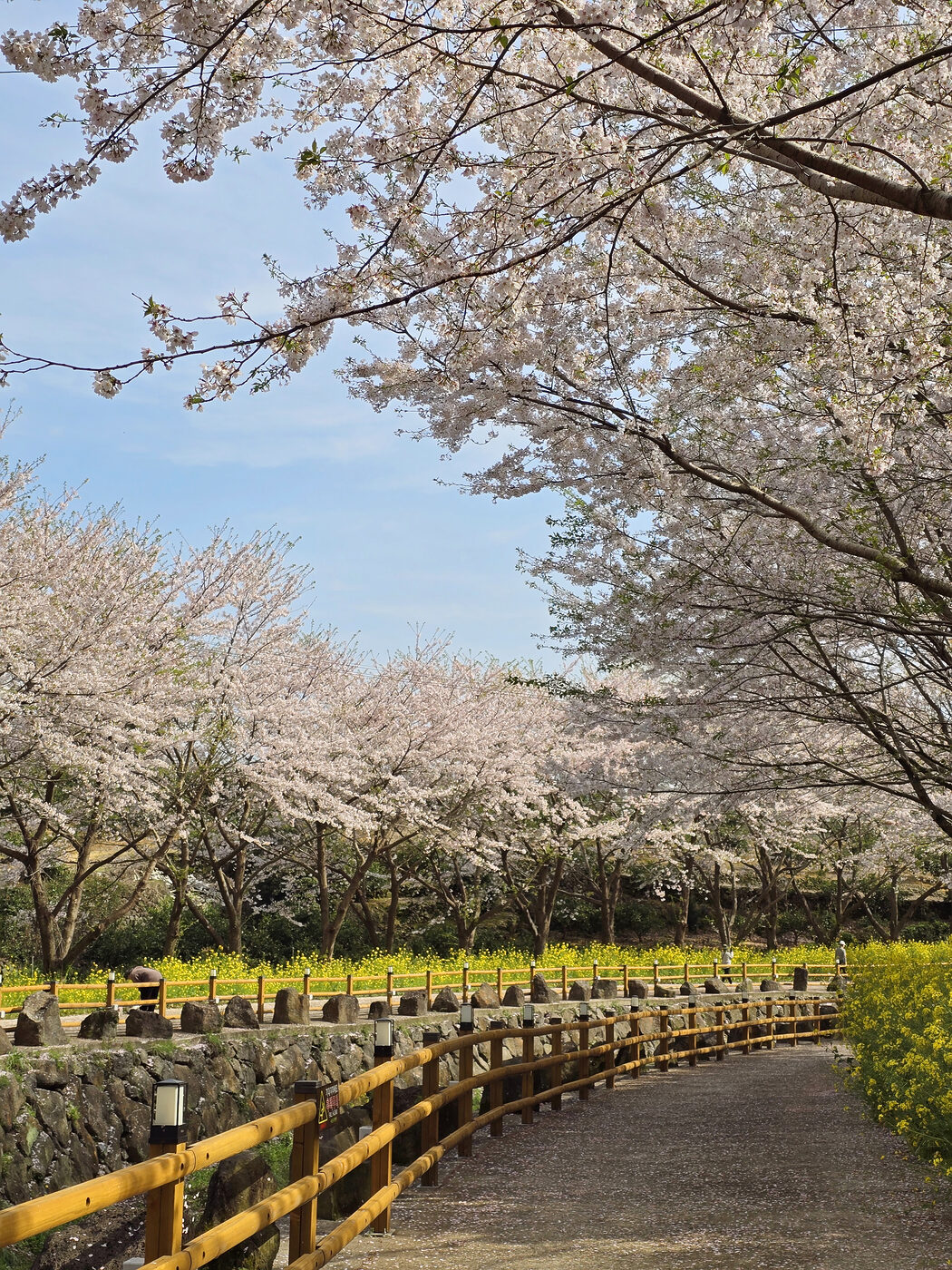 하천 주변으로 조성된 왕복 700m가량의 벚꽃길. 이곳 역시 유채꽃을 함께 즐길 수 있다. 다른 명소들에 비해 고즈넉함이 느껴지고, 마을에 위치했음에도 잡상인이나 상가가 전혀 없어서 쾌적하다. 한 가지 아쉬운 점이라면 작년부터 이곳의 벚꽃이 가장 절정일 때 지역 축제가 열린다는 것이다. 이를 피하고 싶다면 방문일을 타협해야 할 것이다. 입구 노천 주차장에 간이 화장실이 있다.