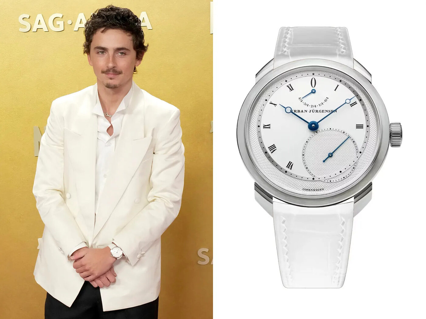 티모테 샬라메는 우르반 위르겐센 UJ-2를 착용했다. 그가 미신을 믿는지는 모르겠지만, 골든글로브에서 이 독립 브랜드 시계를 착용하고 수상한 이후로 계속 같은 시계를 착용하고 있다. 물론 의상에 맞춰 스트랩은 바뀌었다. 오스카에서도 이 시계를 다시 차고 나올 가능성이 높아 보인다.