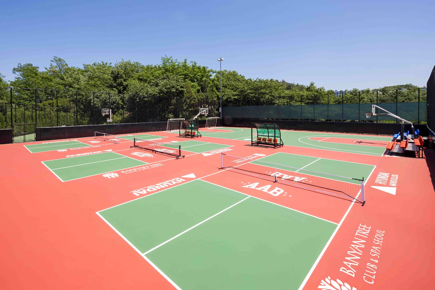 반얀트리 피트니스 센터의 백미는 자연 채광. 쏟아지듯 들어오는 아침 햇살을 따라 시선을 옮기다 보면 그 끝에는 남산의 풍광이 근사하게 펼쳐진다. 총 2개 층으로 구성된 피트니스 센터에서는 요가와 발레, 스포츠 클라이밍 등 다양한 프로그램을 운영한다. 농구와 피클볼 등을 즐길 수 있는 멀티 코트와 테니스 코트가 있는 야외 스포츠 공간도 매력적이다.