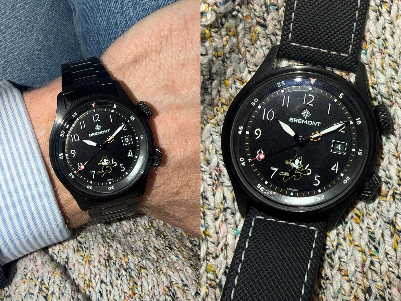 브레몽 CEO 다비데 체라토는 이렇게 말한다. “새로운 브레몽 MB x 펠릭스 더 캣 시계를 통해 우리는 ‘즐거운 시계 제작’이라는 개념을 담아내고 싶었습니다. 브레몽은 늘 개성과 영국적인 독창성을 강조해왔고, 펠릭스는 그 모든 요소를 담고 있습니다. 고도로 기술적인 동시에 내구성이 뛰어나고, 장난기 있는 파일럿 워치죠.”