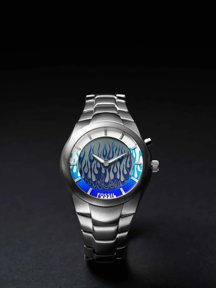 모든 시계는 그 시대의 산물이지만, 어떤 시계는 특정 역사적 순간과 특히 더 강하게 연결되어 있다. 피아제 폴로가 디스코 시대의 산물이고, 스와치 젤리피시가 1980년대의 화려한 포스트모더니즘을 반영한다면, 포실의 빅 틱 역시 보이밴드와 CK 원의 시대를 완벽하게 상징하는 제품이다. 1999년에 출시된 빅 틱의 가장 큰 특징은 아날로그 시침과 분침 아래에서 초를 세는 둥글게 부풀어 오른 애니메이션 디스플레이였다. 출시된 지 25년이 넘은 지금, 빅 틱은 오아시스부터 루즈핏 수트까지 2020년대에 다시 등장하고 있는 Y2K 이전 문화의 복귀 행렬에 합류한 최신 사례다.