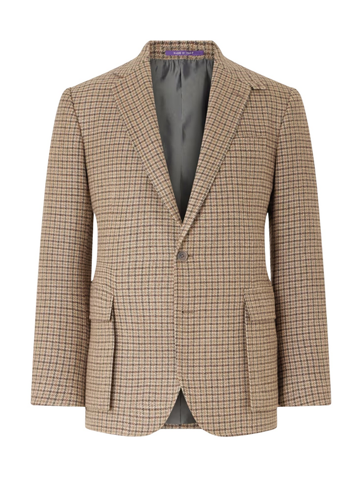 랄프로렌 퍼플라벨켄트 스웨이드 트리밍 체크 린넨 및 울 블렌드 블레이저