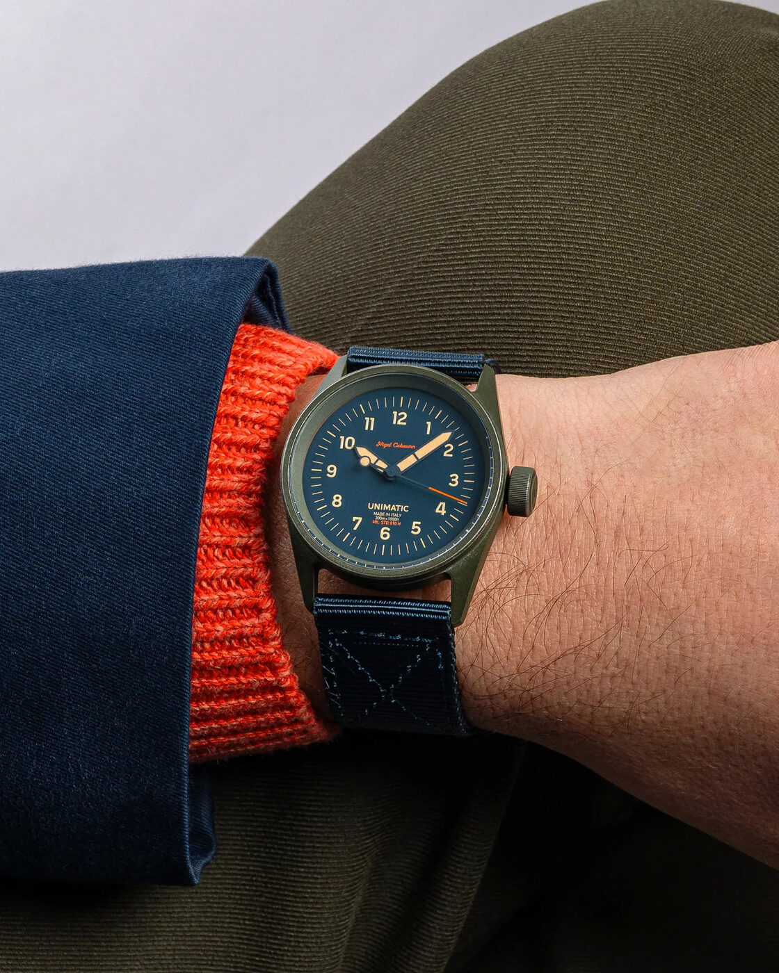 이탈리아 시계 브랜드 유니매틱이 남성복 전설 두 디자이너가 손을 잡았다. 나이젤 카본과 아머리의 마크 조가 선보이는 새로운 필드 워치. 가격마저 합리적이다.