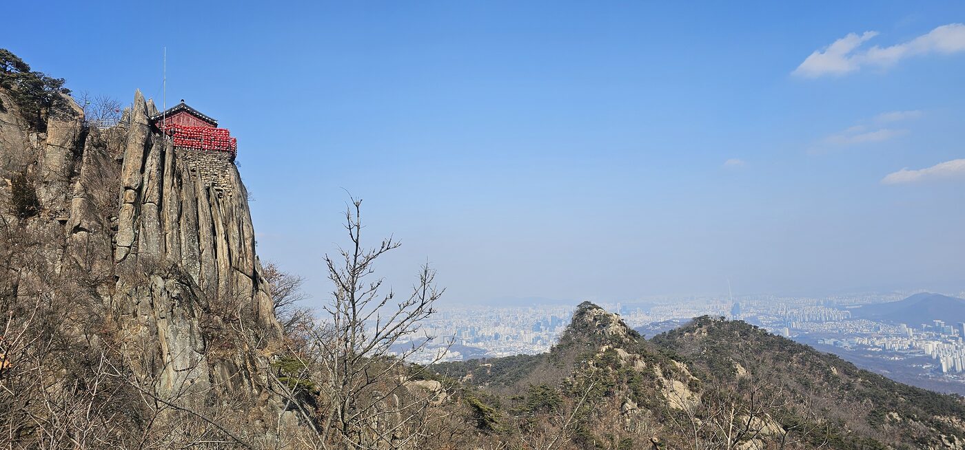 연주대는 임금(주군)을 그리워한다는 뜻이다. 조선이 세워지고 수도를 한양으로 옮겨 고려 충신들이 연주대에서 고려를 그리워했다는 이야기가 유명하다. 커다란 바위에 적혀 있는 관악산이라는 글자를 보면 뿌듯함과 성취감이 밀려온다. 주말에는 사람이 많아 줄 서서 사진을 찍어야 하지만 평일은 비교적 한산하니, 인증샷은 필수다. 앞뒤 사람에게 사진을 요청하면 혼자 등반해도 멋진 사진을 찍을 수 있다. 연주대 바위 오른쪽으로 돌아가면 암자를 만날 수 있는데 이곳에서 보는 경치가 매우 좋다. 반드시 들렀다가 내려가자.