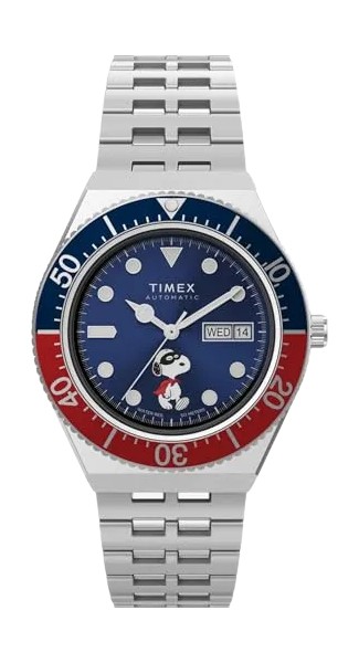 여러 강아지들처럼 스누피도 협업에 있어 꽤 자유로운 캐릭터다. 애플은 3년 전 우드스톡이 함께 등장하는 스누피 워치 페이스를 만들었고, 스와치, 오리엔트, 뱀포드 역시 최근 피너츠의 전설적인 캐릭터를 활용한 시계를 선보였다. 그렇다면 타이멕스의 M79가 특별한 이유는 무엇일까? 무엇보다 기본 모델 자체가 훌륭한 시계이기 때문이다. 코네티컷 기반 브랜드가 1970년대 후반에 선보였던 디자인을 기반으로 한 이 모델은 기계식 무브먼트, 의외로 우아한 브레이슬릿, 그리고 클래식한 펩시 스타일 베젤을 갖추고 있다. 학교가 방학에 들어가면 곧장 해변으로 향하고 싶게 만드는 ‘데일리 비터 워치’다.