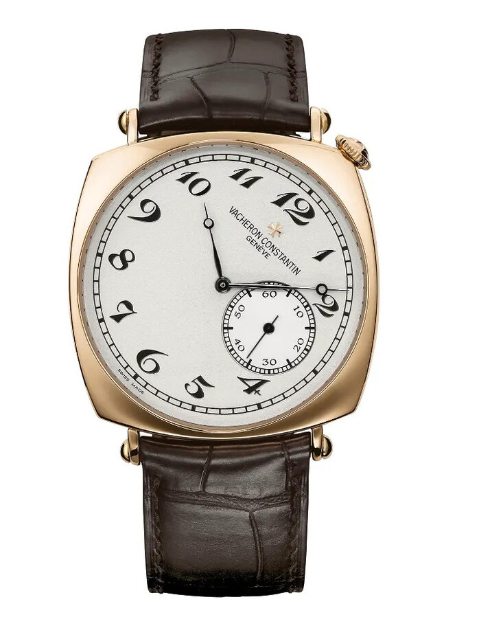 디자인만 봐도 독특하다. 사각형에 가까운 케이스에 다이얼이 오른쪽으로 기울어져 있어 12시 방향이 일반적인 1시 30분쯤에 위치한다. 화려한 아라비아 숫자 인덱스, 큼직한 스몰 세컨즈 서브다이얼, 핑크 골드 케이스, 가죽 스트랩이 조합된다. 전반적으로는 까르띠에 스타일의 드레스 워치 문법을 따르지만, 실제로 착용하면 40mm 크기와 두툼한 케이스 덕분에 스포츠 워치에 가까운 존재감도 느껴진다.