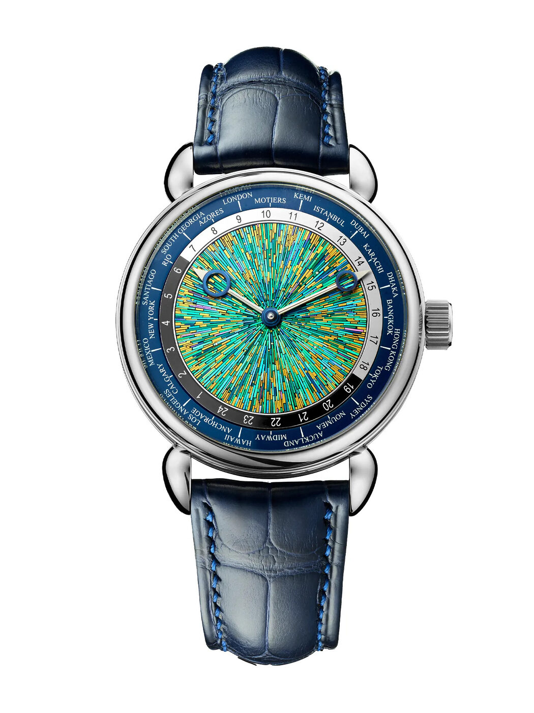 스포츠 워치에 월드타임 기능을 더한 모델로, 30분과 15분 오프셋을 포함한 37개 시간대를 모두 표시하는 정밀함이 핵심이다. 지도 부분은 벨벳처럼 마감한 바다와 선레이 새틴 브러시드 대륙으로 표현됐다. 퀵 릴리스 스트랩 시스템도 적용돼 있어 스트랩을 손쉽게 교체할 수 있고, 부드러운 가죽 스트랩으로 바꿔 한층 더 드레시하게 연출할 수도 있다.