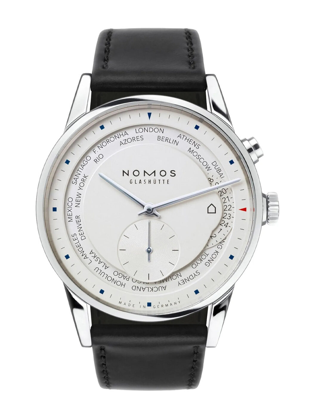월드타임 시계는 종종 색과 정보가 넘쳐나는 복잡한 다이얼로 치닫지만, 이 모델은 같은 기능을 훨씬 차분하게 보여준다. 나르바에스는 이렇게 말한다. “절제되고 단순한 디자인을 원한다면 노모스 취리히 월드 타임은 아주 깔끔하고 가독성 좋은 레이아웃을 제공합니다. 인하우스 노모스 무브먼트를 탑재했고, 지름 40mm로 착용감도 뛰어나죠.” 약 936만 원의 합리적인 가격도 마음에 든다.