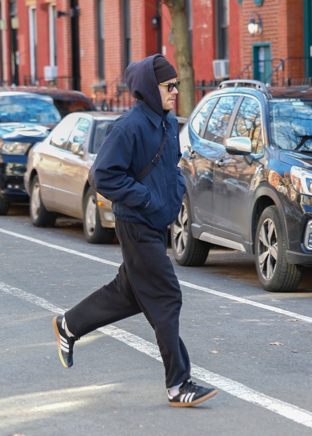 이 영국 출신 팝스타는 네이비 컬러 프라다 윈드브레이커에 낡은 검은색 아디다스 삼바를 신고 맨해튼과 브루클린을 잇는 그래피티 가득한 현수교를 건넜다. 아쉽게도 초록색은 전혀 없었다. 바로 그날, 해리 스타일스는 여자친구 조 크래비츠와 함께 귀여운 작은 모자를 쓰고 같은 분홍빛 다리를 건너는 모습이 포착되기도 했다. 전체적으로 도시 산책에 알맞은 훌륭한 차림이었고, 동시에 지난주 우리가 목격한 그의 다리 러닝 룩처럼 은근히 고급스러웠다. 당시 그는 긴팔 밴드 티셔츠에 재크 마리 마지 선글라스, 새하얀 뉴발란스를 매치하고 있었다.