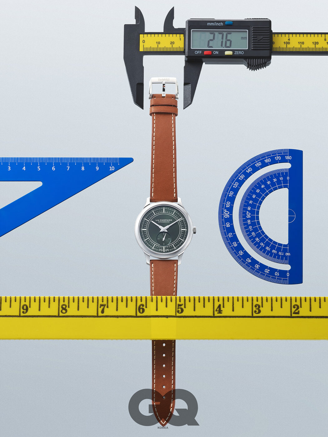 우수한 디테일과 우아함을 갖춰 드레스 워치의 모범이라고 불리는 L.U.C. 케이스는 80퍼센트 이상 재활용 소재를 활용한 루센트 스틸™로 제작했고, 두께는 7.2밀리미터로 다듬었다. 신록을 입은 다이얼은 선버스트 새틴 브러시드 마감 처리해 더욱 진하게 다가오며, 아르데코 스타일에서 영감받은 섹터 디자인을 적용했다. L.U.C XPS 포레스트 그린 1억 2천4백16만원, 쇼파드.