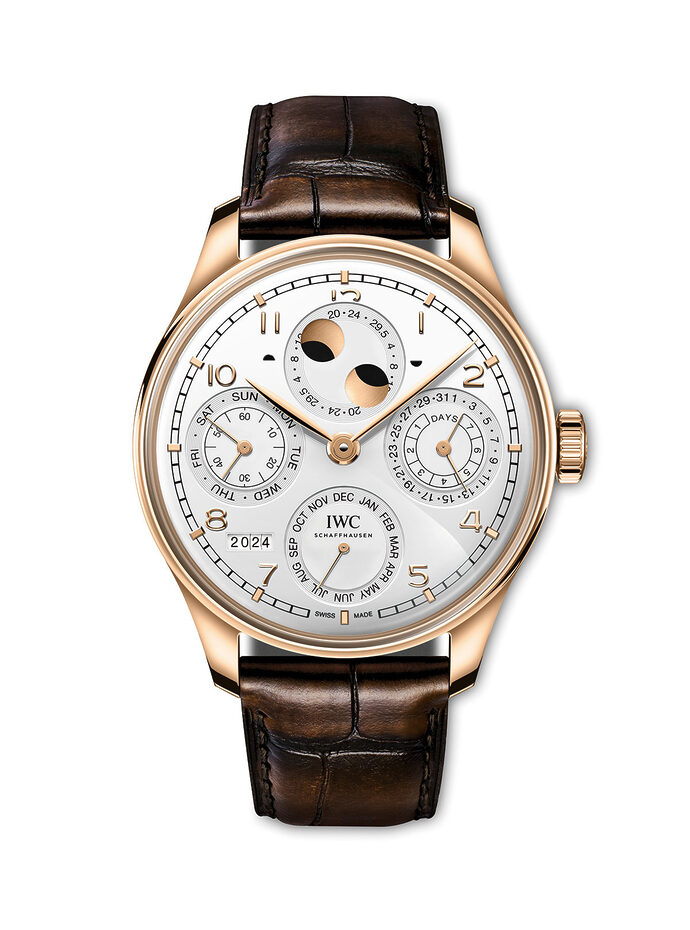 이날 그가 착용한 시계는 옐로 골드 케이스의 IWC 샤프하우젠 포르투기저 퍼페추얼 캘린더였다. 퍼페추얼 캘린더는 단순히 날짜만 표시하는 것이 아니라, 날짜·요일·월·연도를 모두 추적하고, 이 모델에는 문페이즈 기능까지 더해져 있다. 긴 흐름을 읽는 감독의 시선과 잘 어울리는 선택이다.