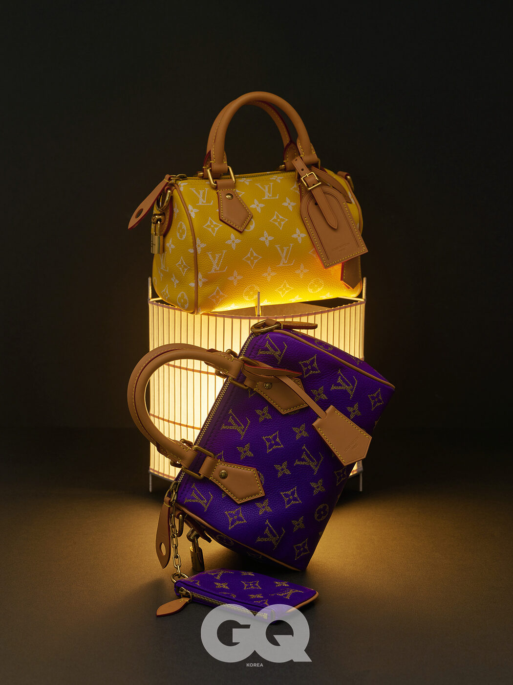 옐로 스피디 P9 반둘리에 20, 퍼플 스피디 P9 반둘리에 20, 모두 루이 비통. 아크 램프, 양정모 at 챕터원.