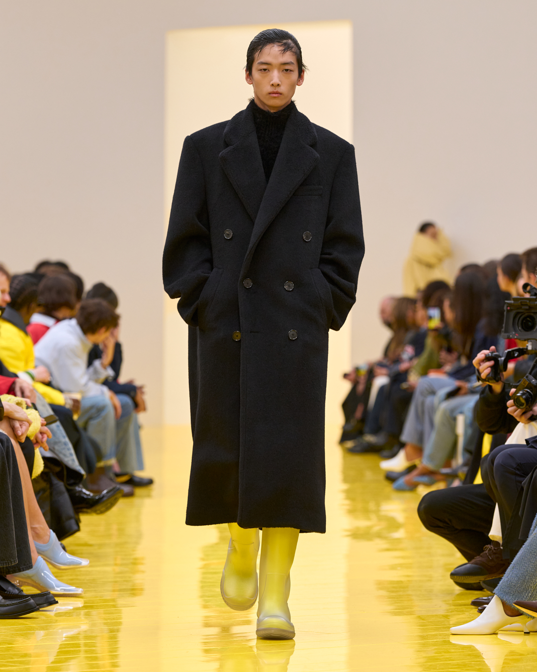 로에베 2026 F/W 컬렉션 쇼장에 들어서자 먼저 도착한 손님들과 눈이 마주쳤다. 고래와 문어, 조개, 소라게, 이름 모를 해양 생물이 관객석 사이에 슬며시 자리 잡고 있었다. 이들은 아티스트 코시마 폰 보닌의 대형 해양 생물 조각. 그 세계의 주민이자 쇼를 함께 관람하는 동반자로서 공간을 침범하고 있었다. 동시에 이 공간을 어떤 세계로 인지해야 할지 알려주는 힌트이기도 했다. 기이한 분위기 덕에 마블의 아스가르드가 떠올랐다. 아스가르드가 신들의 왕국이라면, 이곳은 기묘한 생명체들이 각자의 스타일로 살아가는 해저 왕국 같았다. 모델들은 해저 원주민처럼 런웨이에 등장했다.
