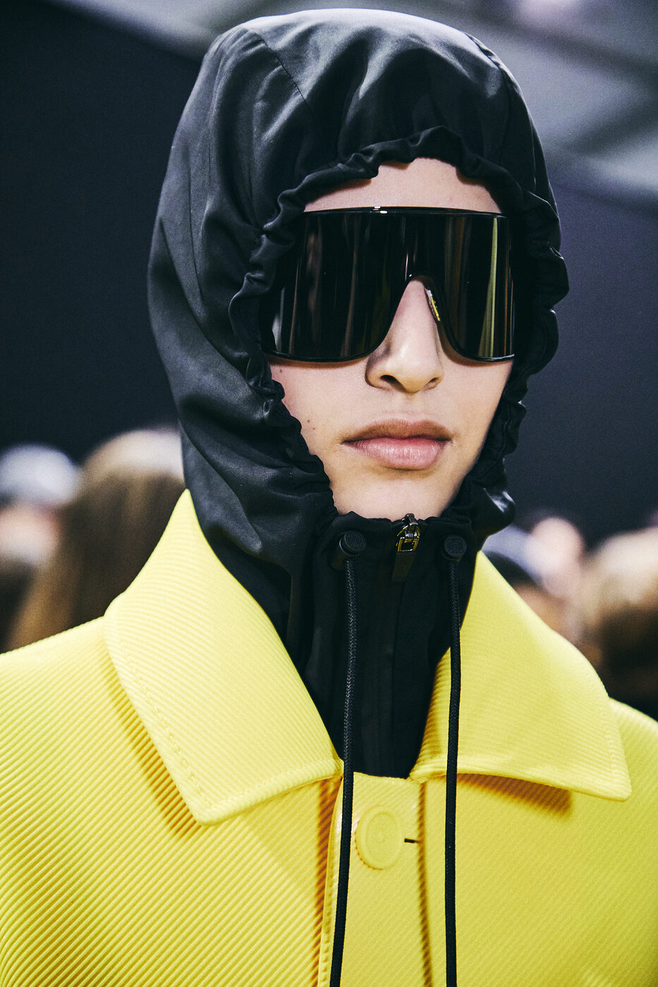특히 이번 컬렉션은 잭 맥콜로와 라자로 에르난데스 듀오가 로에베에서 선보이는 두 번째 시즌이자, 첫 남성 룩을 선보이는 챕터. “만든다는 행위는 기쁨의 표현이며, 장난기 어린 에너지를 품은 지적인 탐구의 장”. 이렇게 말하는 다 큰 소년들에게 스페인 특유의 천진한 태생을 잃지 않는 로에베는 더없이 좋은 놀이터였을 것이다. 그들의 낙관적 상상력은 조형물을 조각하듯 유머러스한 룩을 만드는 것으로 발현됐다. 구명조끼처럼 부풀린 가죽 파카는 잠수 장비처럼 보였고, 고무 질감 코트와 재킷은 다이버 수트를 연상시켰다. 이런 위트는 비교적 일상적인 실루엣에서도 유효했다. 클래식한 테일러링 수트에 다이버 슈즈가 떠오르는 러버 몰딩 스니커즈를 매칭했고, 니트에는 살짝 벗겨진 잠수복 디테일을 더했다. 다이브 장비 가방을 닮은 슬링 백도 등장해 이 세계관만의 유머를 견고히 했다. 룩들은 멀리서 보면 조형적인 오브제처럼, 가까이 보면 공예품처럼 다가왔다. 라텍스 코팅한 데님은 익숙한 옷을 이질적으로 보이게 만들었는데, 액체가 흐르다 굳어버린 듯한 표면이 현실과 상상의 경계를 모호하게 했다. 레이스와 리본 장식의 파자마 톱은 복제본을 3D 프린팅한 뒤 라텍스를 입힌 것으로, 텍스처가 실제 섬유처럼 정밀한 착시를 만들어냈다. 이토록 기묘한 물성들이 모여 로에베의 상상력을 지탱하고 있었다.