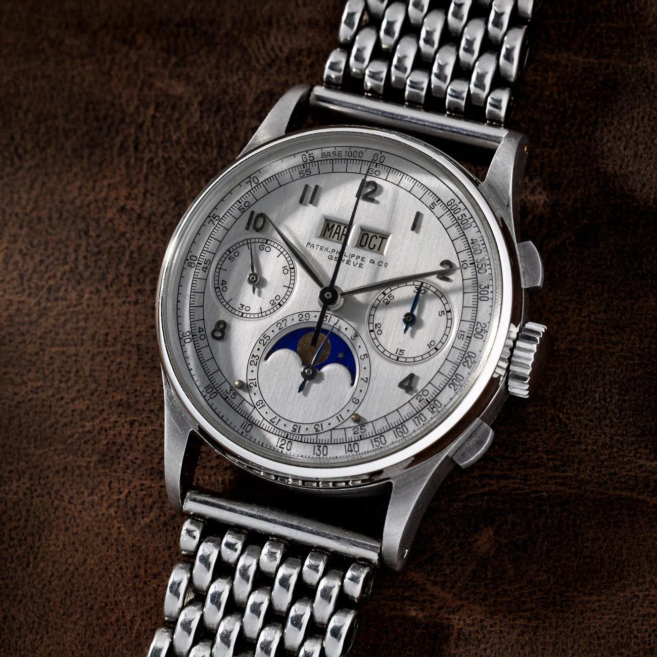 파텍 필립 역사상 가장 전설적인 시계 중 하나는 레퍼런스 1518 스틸 버전이다. 1518은 1941년, 퍼페추얼 캘린더와 크로노그래프를 최초로 결합한 시계다. 기술적으로 너무 어려운 도전이어서, 이후 수십 년간 다른 브랜드들은 이를 재현하지 못했다. 이런 초고난도 시계는 당연히 가장 값비싼 소재에만 허락됐고, 대부분 골드 케이스로 제작됐다. 그래서 스틸 1518은 존재 자체가 모순에 가까운 희귀종이다.