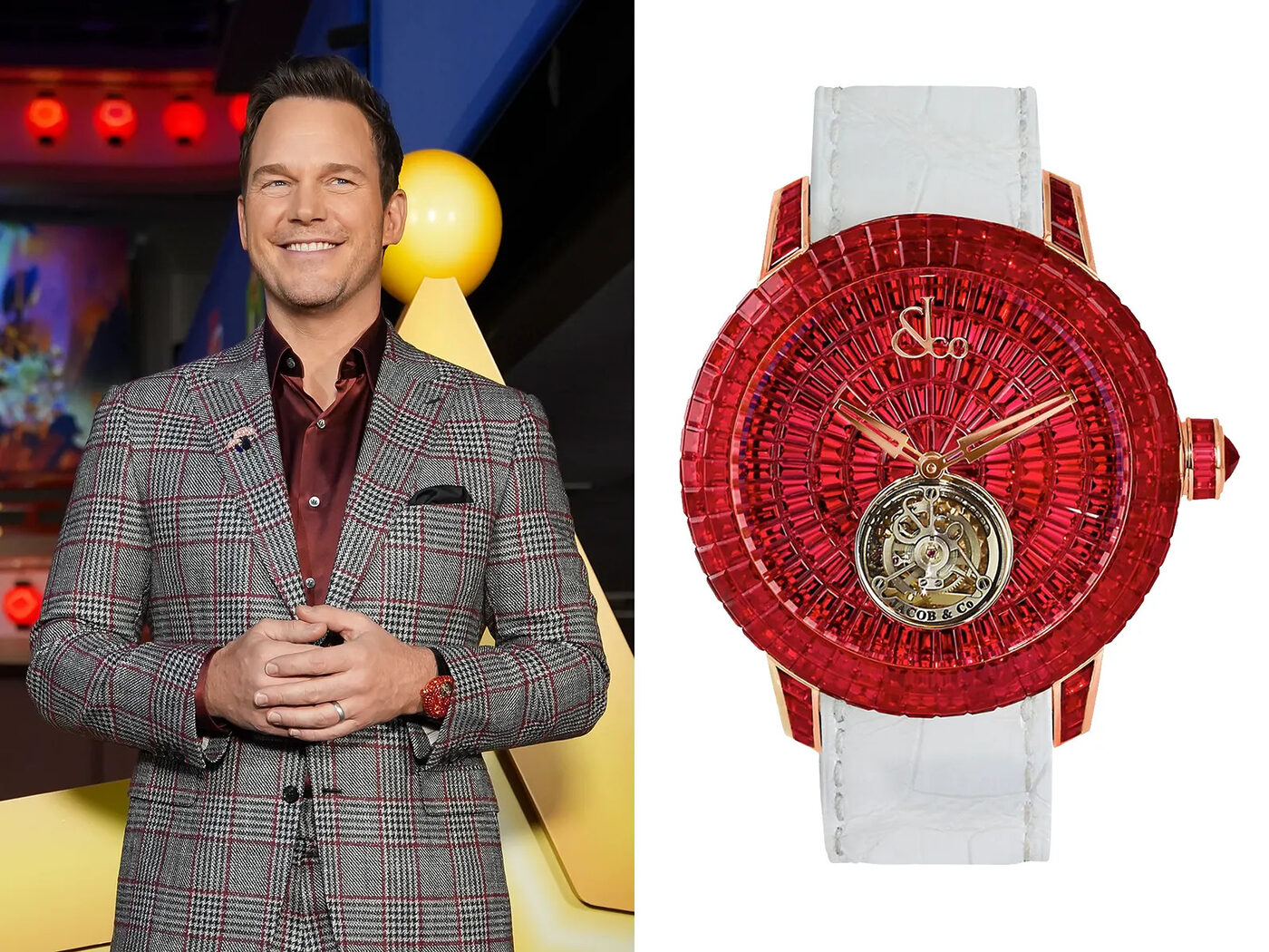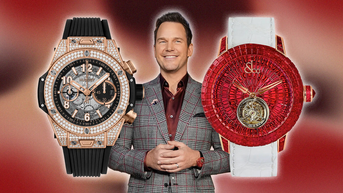 영화 슈퍼 마리오 갤럭시 홍보 차 일본에 들른 배우 크리스 프랫은 귀여운 디지털 시계를 찼을 거라는 예상과는 전혀 다른 주얼리 잔뜩 박힌 시계를 착용하고 등장했다. 생각보다 더 귀엽다.