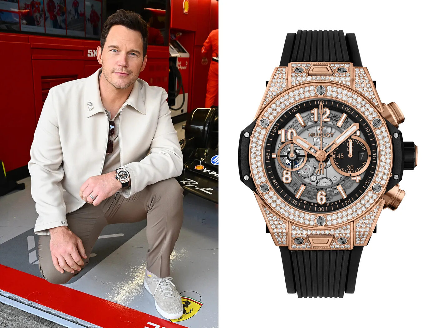 프랫은 스즈카에서 열린 F1 그랑프리에서도 그 기조를 이어갔다. 잭 블랙, 브리 라슨, 베니 사파디와 함께 피트를 둘러보며 페라리 머신 앞에서 포즈를 취했는데, 이번에는 위블로의 유니코 빅뱅을 착용했다. 패독에 딱 어울리는 선택이다. 위블로는 크고, 묵직하고, 스포티한 시계로 유명하고, 그중에서도 빅뱅은 대표 모델이다. 크로노그래프 기능까지 더해 랩 타임 측정에도 어울린다.