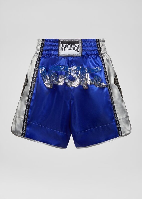 VERSACEㅣ베르사체는 캣워크를 누빈 화려한 복싱 쇼츠를 판매했다. 블랙과 블루, 핑크 등 다채로운 컬러에 베르사체 로고를 직관적으로 넣은 것이 특징.