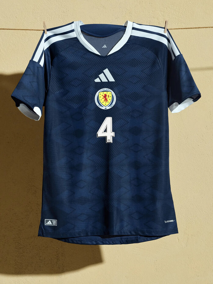 원정에서 스코틀랜드가 입을 피치 톤 유니폼은 꽤 눈에 띄지만, 네이비와 화이트로 구성된 홈 유니폼은 그다지 특별할 건 없다.