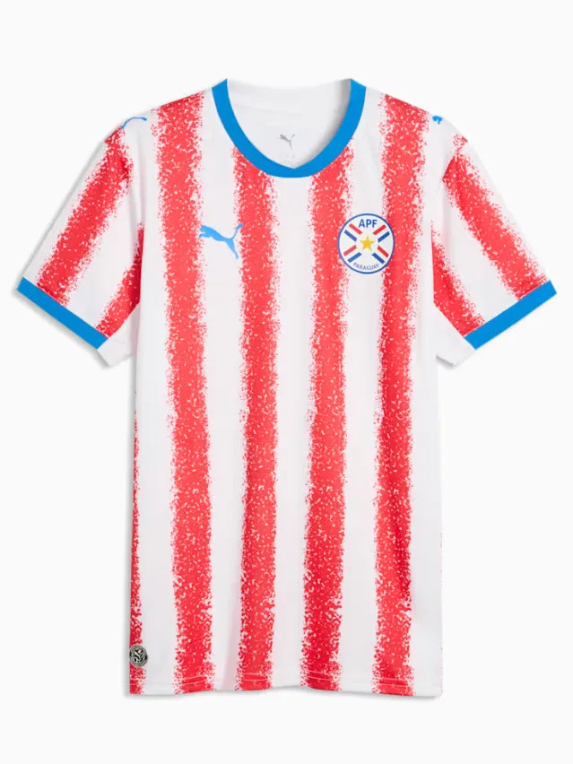 이제 좀 과감하게 가보자! 파라과이는 여전히 레드와 화이트 스트라이프를 유지한 채로, 에어브러시처럼 보이는 로우파이한 디자인을 선보였다.