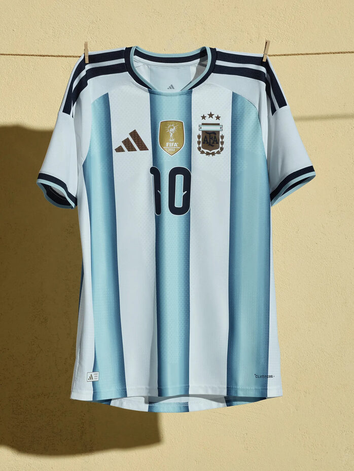 아르헨티나의 유니폼을 만든 이들은 원정 킷을 하나의 실험 무대로 삼은 듯하다. 하늘색 스트라이프는 그야말로 박물관에 전시해도 될 만큼의 작품이다.꽤 과감하고 엉뚱한 방식이지만, 결과적으로는 제대로 먹혔다.