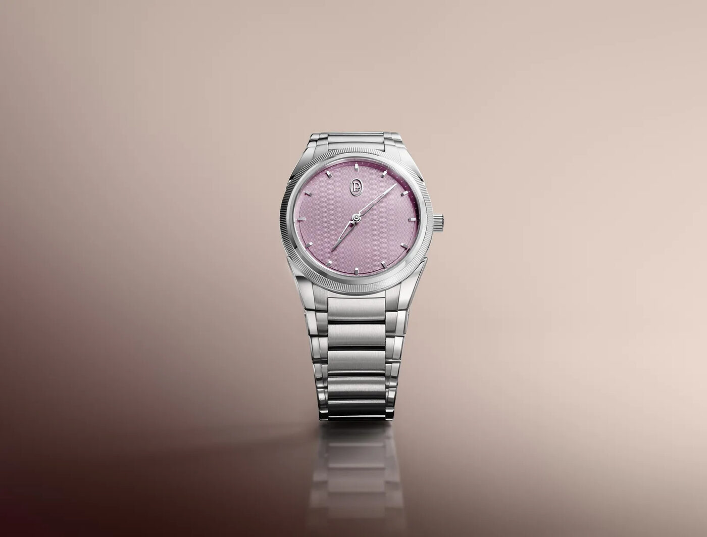 일상용으로 착용하기 좋은 스테인리스 스틸 시계를 찾고 있다면, 파르미지아니 플뢰리에의 톤다 PF 오토매틱 36mm를 고려해볼 만하다. 특히 이번 알타 로사 버전은 장밋빛 다이얼이 돋보인다. 8.6mm 두께의 슬림한 케이스, 독특한 러그 형태, 널링 처리된 플래티넘 베젤이 특징이며, 인하우스 자동 무브먼트 PF770과 스켈레톤 처리된 로즈 골드 로터가 탑재됐다. 기요셰 패턴 다이얼은 어떤 컬러에서도 아름답지만, 이번 알타 로사는 마치 해질녘 수평선을 떠올리게 하는 색감으로 특히 인상적이다.