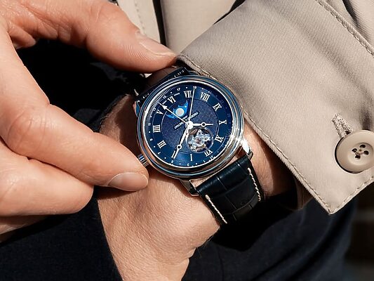 로얄 오크 퍼페츄얼 캘린더의 기능은 두말 할 필요가 없다. 여러 고급 시계 중에서도 최고급 사양이니 말이다. 이 시계의 핵심은 디자인에 있다. 케이스와 브레이슬릿까지 전부 세라믹으로 만들어졌기 때문. 세라믹은 균일하게 컬러를 입히는 것이 어려운 소재다. 푸르지 않은 부분이 없는 이 시계를 만드는 데 일반적인 금속 시계보다 5배 이상 많은 시간이 필요한 이유다. 흥미로운 건, 무척 희귀한 이 시계는 한정판 출시된 것이 아니다. 세라믹 제작 난이도 때문에 생산량이 낮을 뿐이다. 출시가는 2억원대였으나 현재 시장 가치가 7억원에 달하는 것도 같은 이유다.