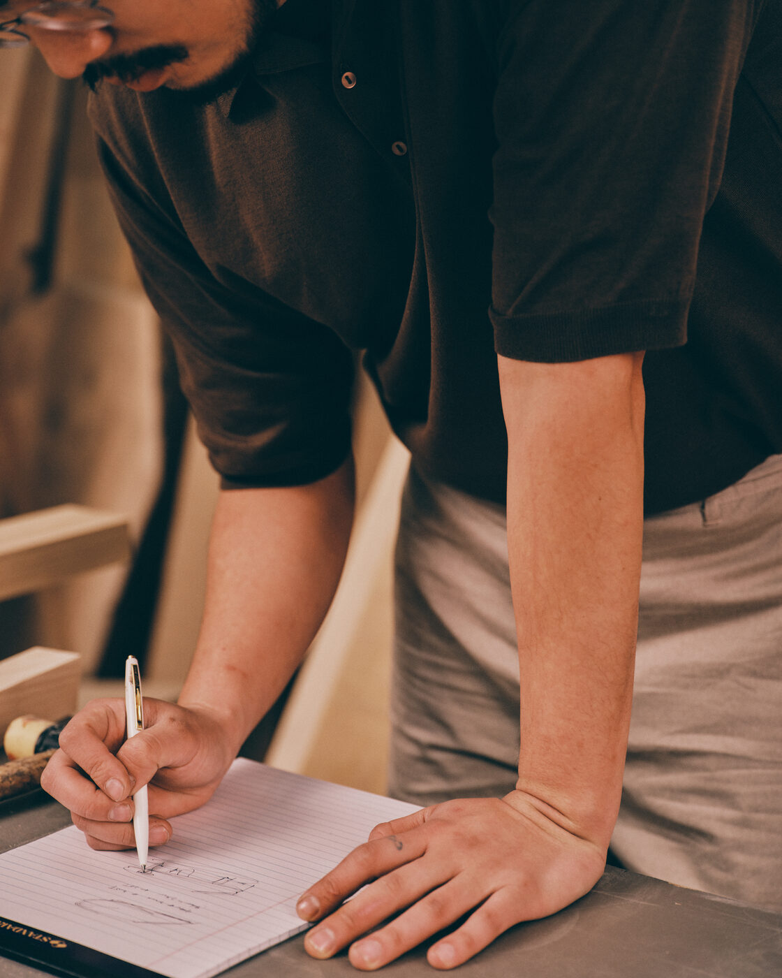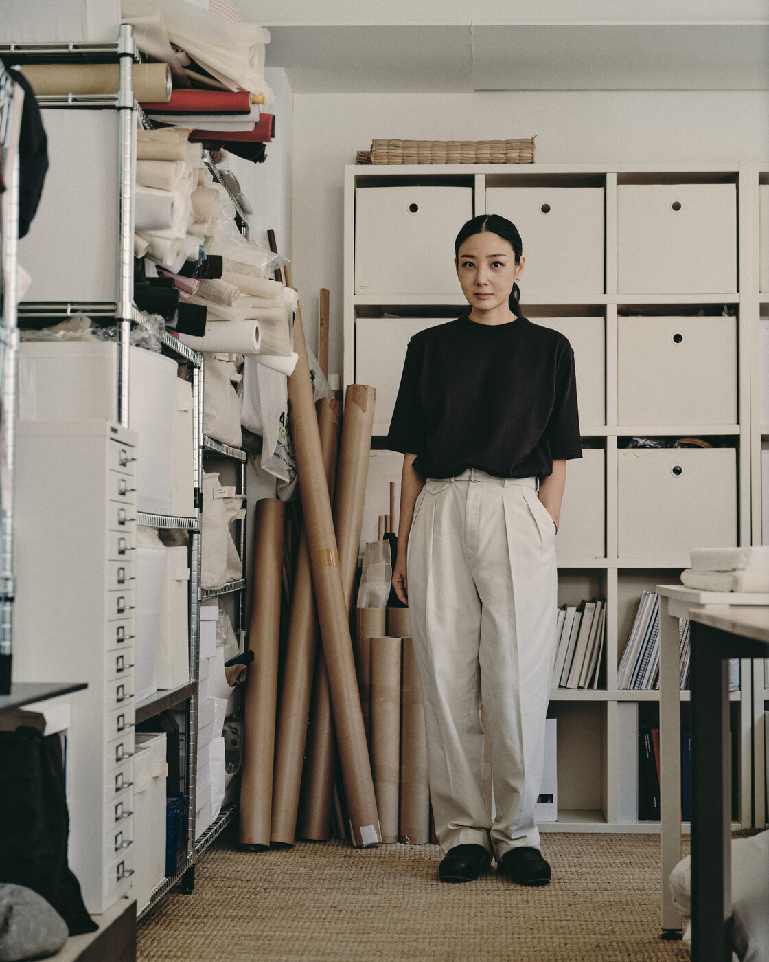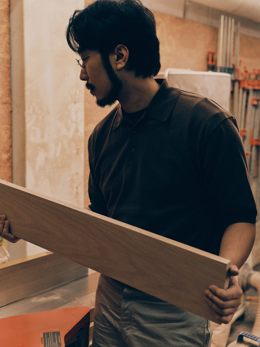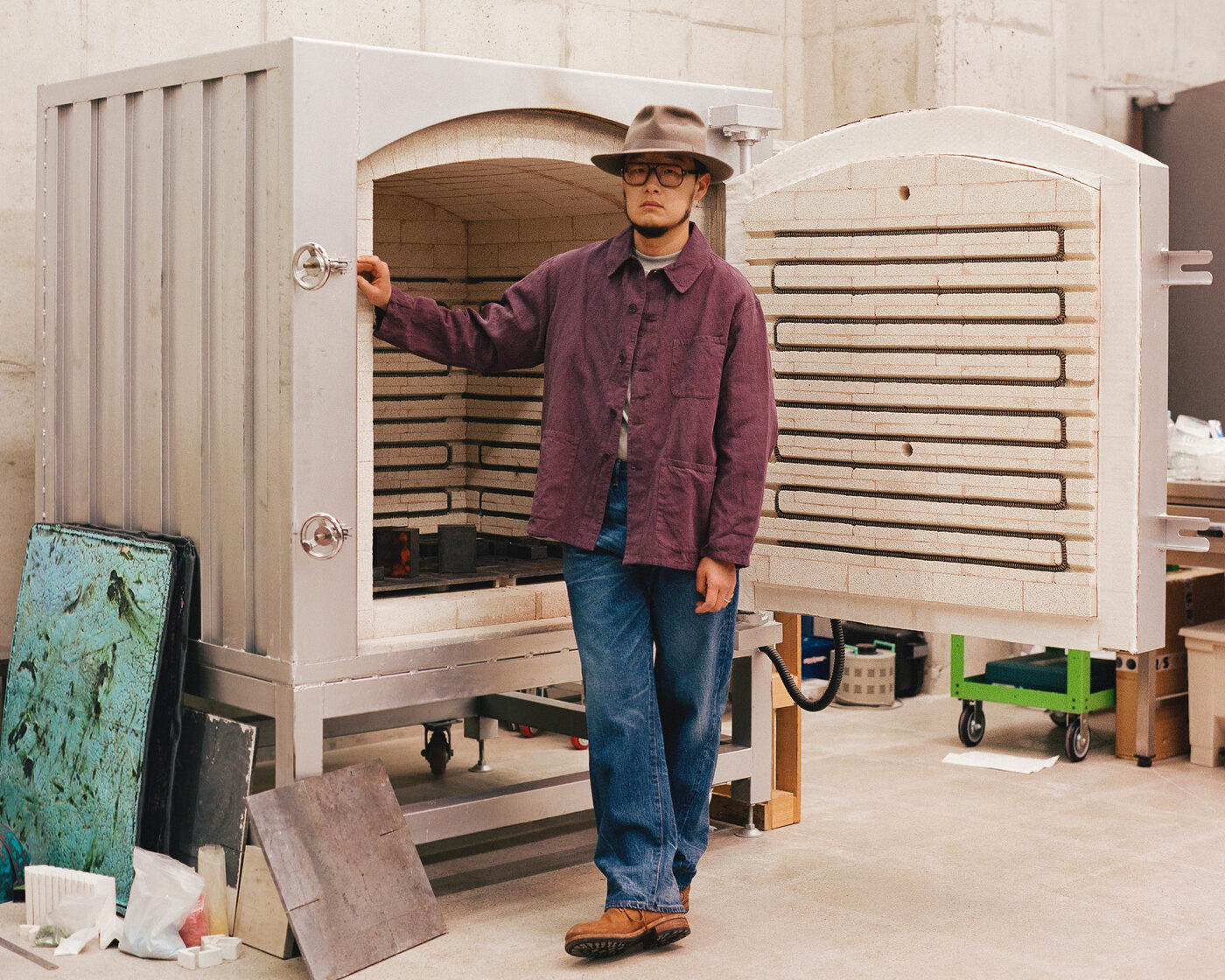 그가 입는 옷도 비슷한 방식으로 선택된다. 눈에 띄기보다 조용히 기능하는 재킷, 과장 없이 균형을 잡아주는 셋업. 작업대 앞에서 몸을 기울이고, 손을 뻗고, 다시 자리를 옮기는 일련의 동작 속에서도 옷은 따로 의식되지 않는다. 대신 반복되는 움직임을 따라가며 조금씩 형태를 바꾼다. 옷을 작업의 리듬을 해치지 않으면서도 오래 함께할 수 있는 친구로 활용하는 것이다.