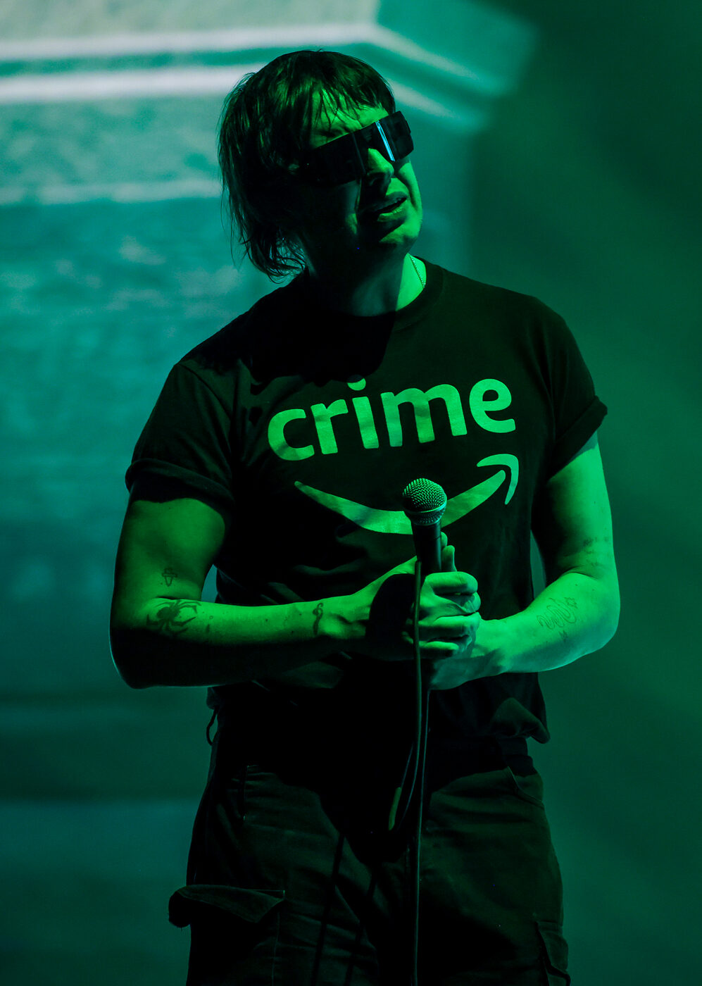 더 스트록스의 줄리언 카사블랑카스는 반체제적인 메시지를 담은 티셔츠를 입었다. 아마존 로고를 패러디해 ‘프라임’ 대신 ‘크라임’이라고 적힌 디자인으로, 뉴욕 브랜드 빌레이너스가 제작한 제품이다. 이 디자인은 모자나 핀 등 다양한 형태로도 판매되고 있다.