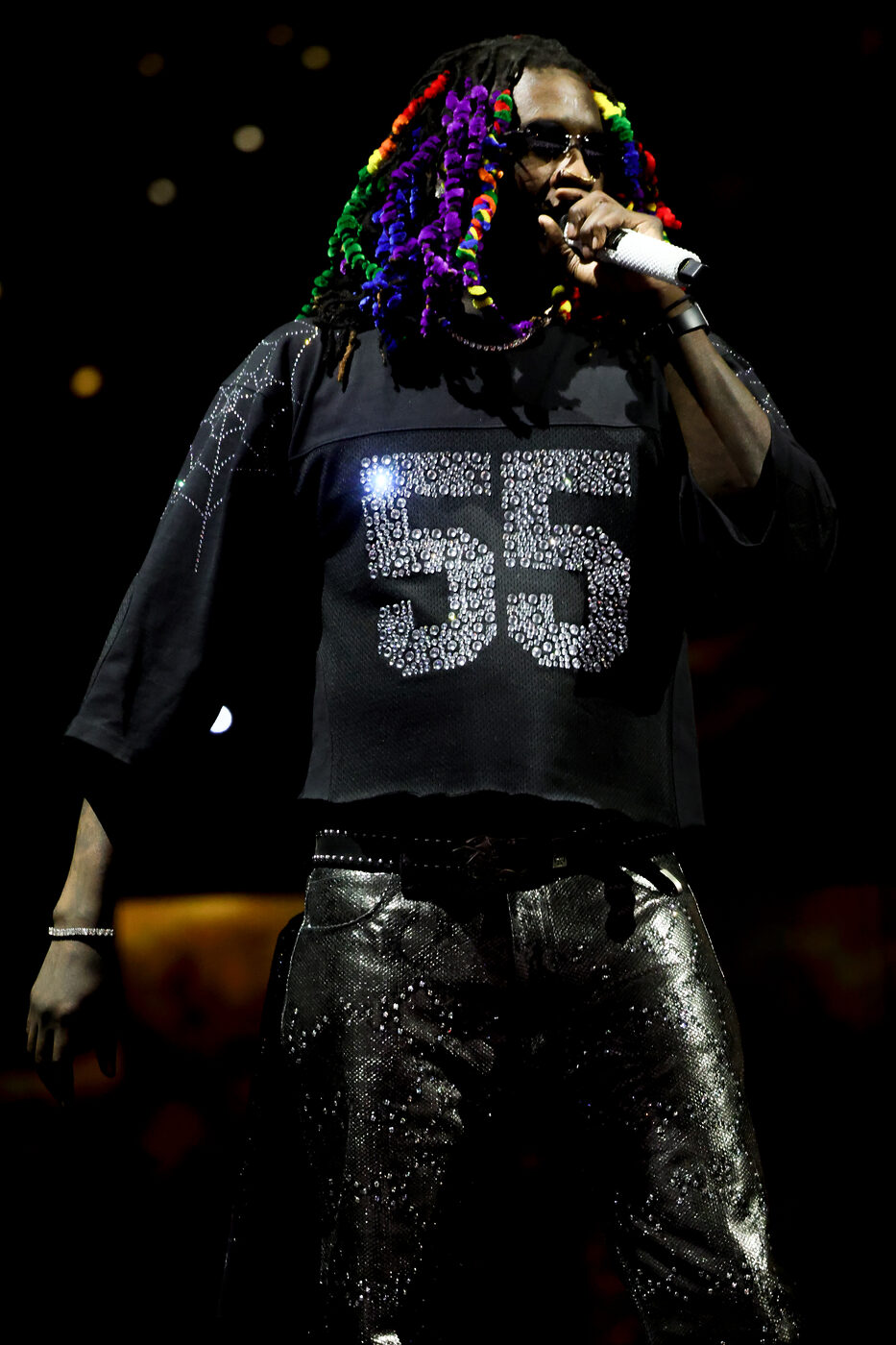애틀랜타 출신 래퍼 영 떡은 개성 강한 스타일로 유명하다. 코첼라에서는 자신의 브랜드 스파이더 저지와 파이톤 패턴 팬츠를 착용했다. 여기에 레인보우 컬러로 엮은 헤어스타일을 더해 시선을 끌었다.