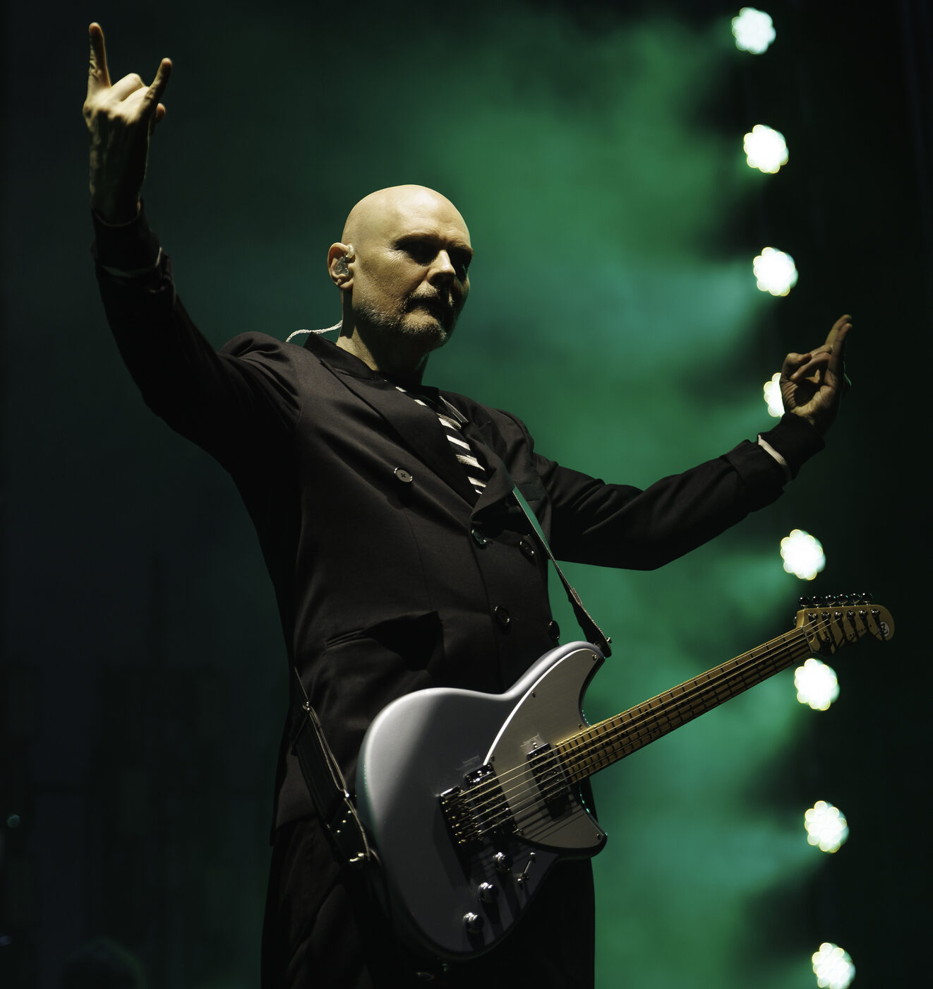 스매싱 펌킨스의 프런트맨 빌리 코건은 솜브르와 함께 무대에 올라 1995년 곡 ‘1979’를 연주했다. 그는 블랙 더블 브레스티드 블레이저와 스트라이프 티셔츠를 매치한 미니멀한 고스 스타일을 선보였고, 실버 기타로 포인트를 더했다.